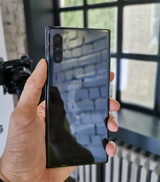 - Samsung GALAXY Note 10 Plus este adevăratul urmaș al liniei premium Note, fără vreun compromis la prima vedere. Cu un raport display / corp de 91% pot să spun că dimensiunile sale mai compacte față de așteptările mele m-au impresionat. Samsung a făcut treabă bună din acest punct de vedere, ai mai multe ecran fără ca dimensiunile terminalului să fie cu adevărat deranjante;