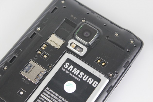 Logo-ul Samsung în partea superioară a display-ului, tasta fizică cu cititor de amprente încorporat la bază + 2 taste capacitive cu rol de back și aplicații recente, stylus încorporat în carcasă. Capacul spate mi s-a părut ceva cam firav, atenție la manevrare ca să nu-l rupeți. Cardul microSD de până la 128 GB poate fi montat fără a scoate acumulatorul de 3000 mAh, pentru microSIM trebuie îndepărtată bateria din locașul său.