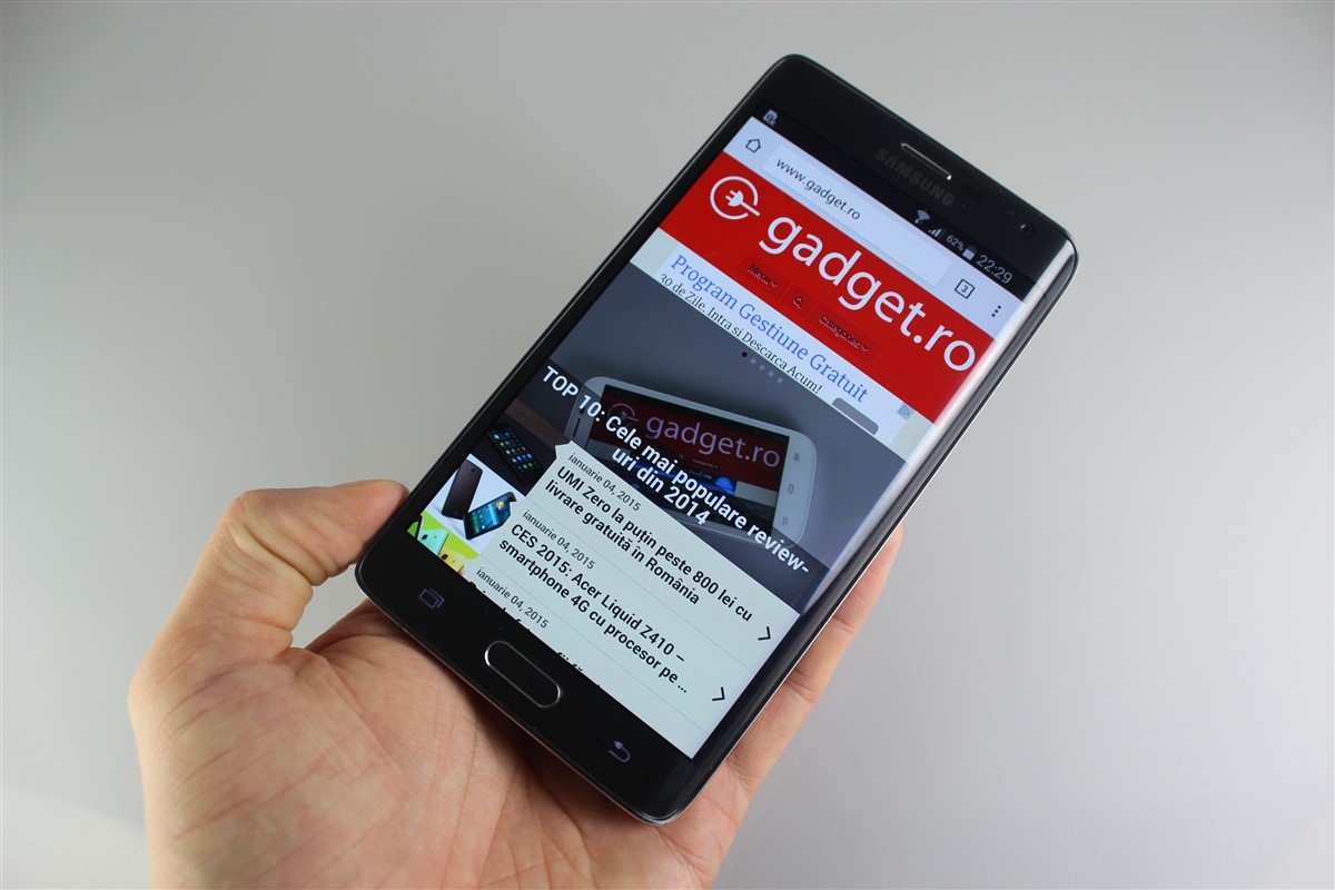 Este mai lat decât GALAXY Note 4, dar păstrează materialele și nivelul de finisare. Am primit multe întrebări legate de muchia cu display-ul curbat, dacă o activezi accidental și ce grip oferă etc. Muchia ce înconjoară display-ul lateral este destul de proeminentă și mai degrabă atingi respectiva zonă cu degetele, mai puțin probabil să activezi display-ul lateral. Nu mi s-a întâmplat să-mi scape din mână și să lovească parchetul sau vreo altă suprafață direct cu display-ul curbat, nu am idee ce rezistență oferă, dacă sticla Gorilla Glass rezistă.