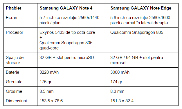 Care sunt diferențele dintre Samsung GALAXY Note 4 și Samsung GALAXY Note Edge?