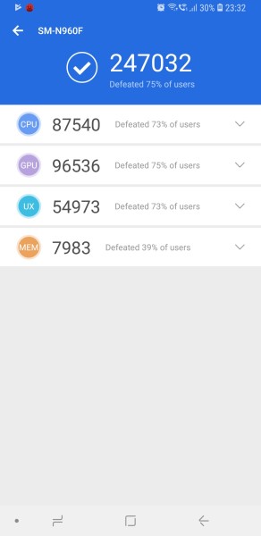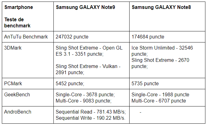 Teste de benchmark rulate pe Samsung GALAXY Note9;