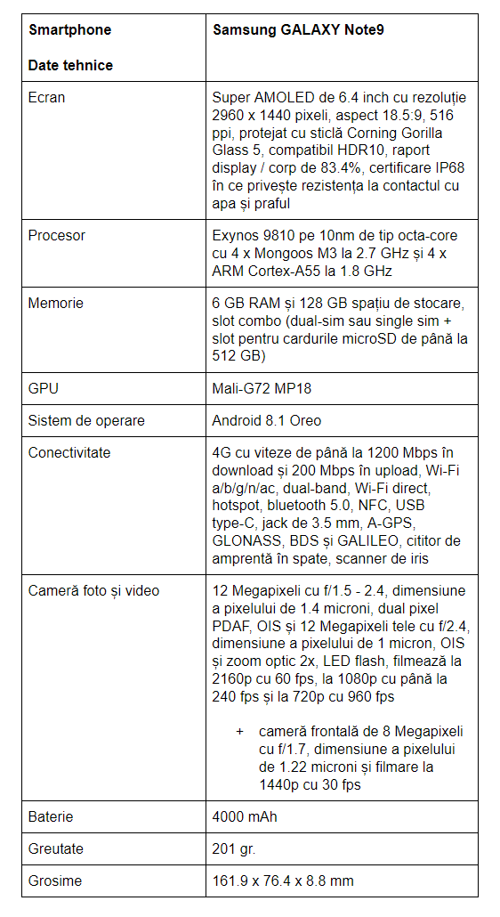 Samsung GALAXY Note9 are un preț ce-l recomandă. Este un telefon complet din multe puncte de vedere, dar lasă și impresia că Samsung a jucat la siguranță și a lăsat revoluția pentru generația viitoare de S10, S10 Plus și Note 10 (asta că tot a fost un zvon că s-ar putea ca Note9 să fie ultima generația din această linie de terminale, adevărul este că în afară de stylus nu prea sunt alte elemente care să-l individualizeze major față de GALAXY S).