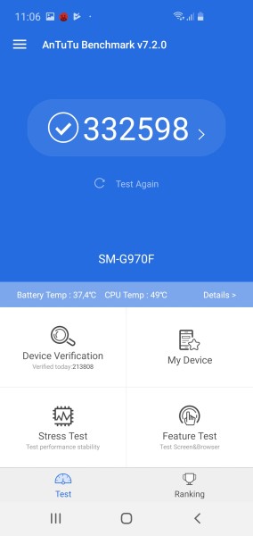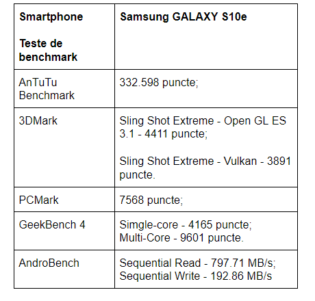 Teste de benchmark rulate pe GALAXY S10e;