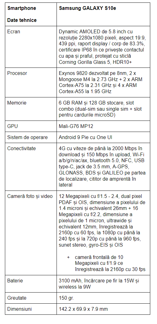 Una peste alta, avem un smartphone premium cu un design elegant, cu dimensuni compacte, cu materiale și finisare în conformitate cu nișa din care face parte. Aspectul practic este la cote înalte în cazul lui S10e.