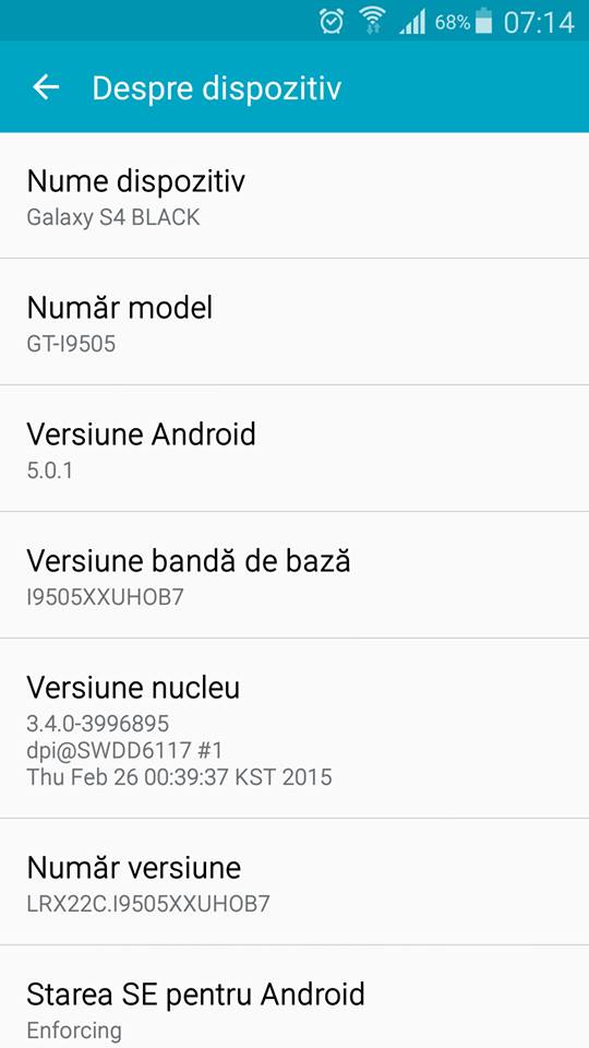 Utilizatorii smartphone-ului Samsung Galaxy S4 Black Edition îşi pot freca mâinile de bucurie deoarece îşi pot instala pe device-urile lor ultima versiune a sistemului de operare Android. Android 5.0.1 Lollipop este acesta, iar dimensiunile sale nu sunt deloc de neglijat: 1092 MB. Prin instalarea acesteia, deţinătorii smartphone-ului Samsung Galaxy S4 Black Edition vor putea utiliza toate beneficiile aduse de această versiune software, inclusiv noua interfaţă Material Design.