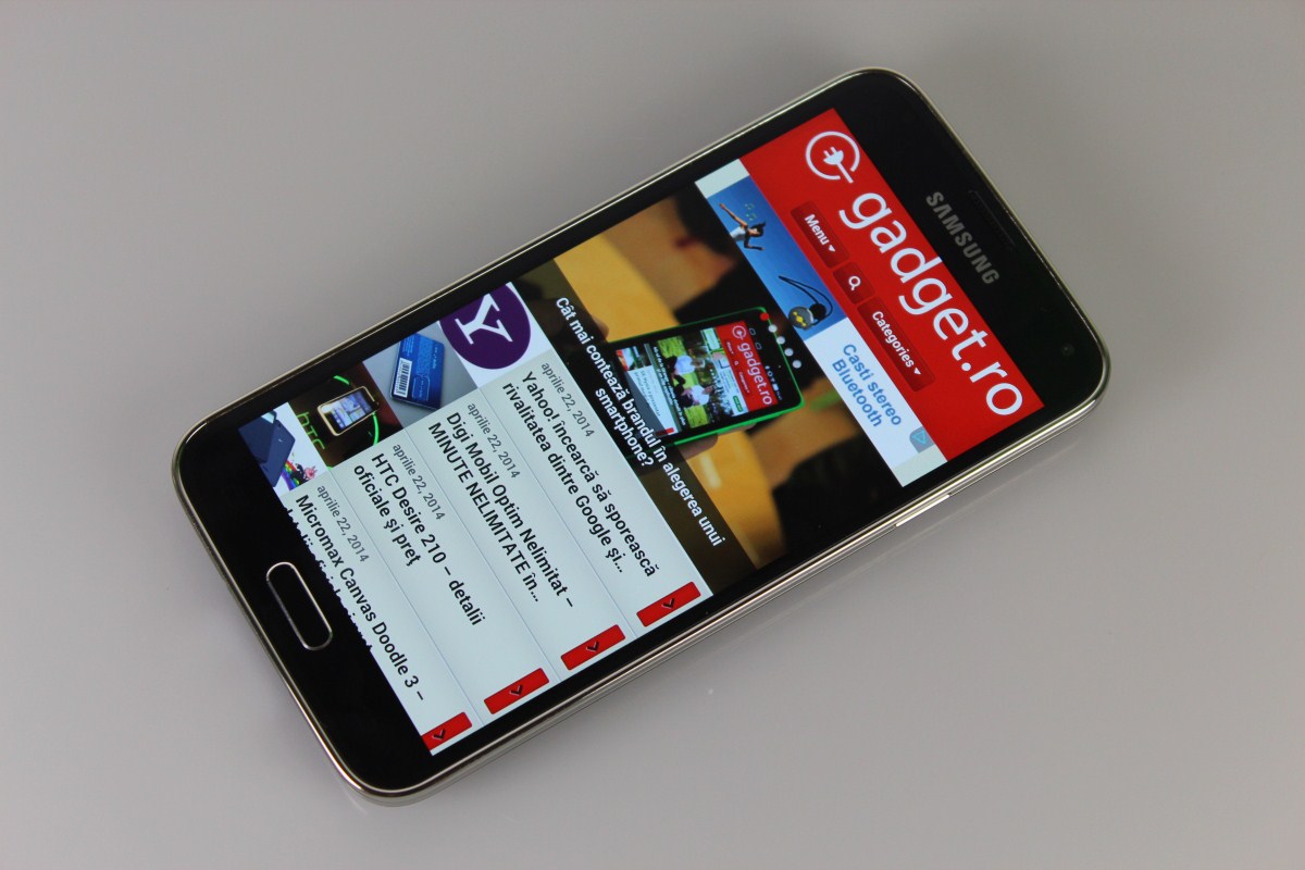 Am citit diverse alte review-uri în care se discuta de lag, bug-uri. Nu știu dacă trebuie să mă simt mai special că nu am avut astfel de probleme, GALAXY S5 a rulat fluent interfața grafică, orice aplicație și joc. Face mai multe sarcini fără să ofere întârzieri în meniu. Nu s-a restarta niciodată din senin, nu s-a blocat. Este inutil să spun că rulează orice aplicație sau joc din Google Play. Pe partea de browsing impresionează, iar tastatura qwerty touch preinstalaltă mi s-a părut a fi destul de ergonomică. Nu am simțit nevoia să trec pe Swiftkey sau pe tastatura Android clasică.