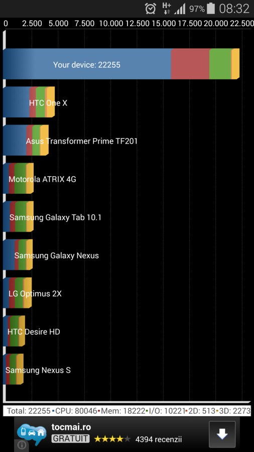 | Vellamo | HTML5 – 1605 puncte;METAL – 1192 puncte. |