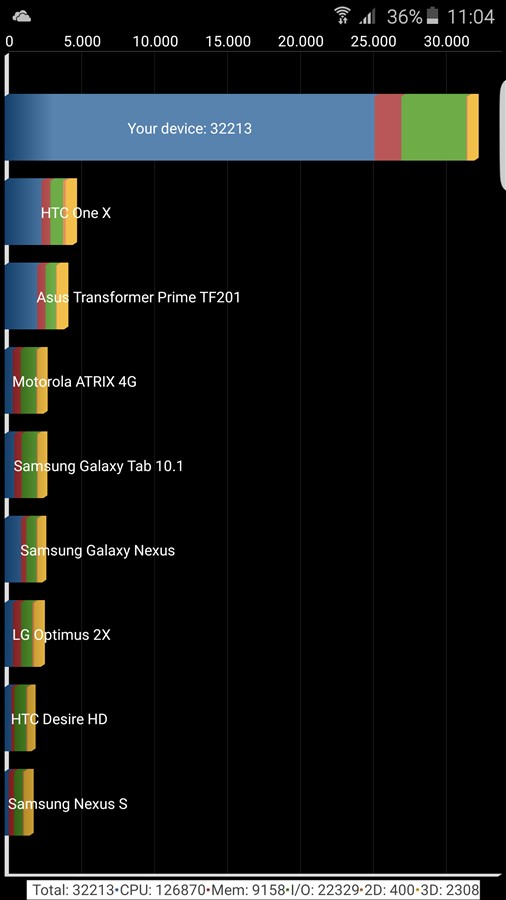 De notat ar fi un aspect ușor dezamăgitor. Se încălzește și chiar destul de puternic, mi s-a părut a atinge temperaturi mai ridicate față de frățiorul său mai mic. Pus în sarcină, simți cum în partea spate, în zona dreaptă începe să se simtă un mic vulcan. Nu erupe, dar ai zice că nici nu mai este mult până când se transformă în metal lichid. De obicei, rulez toate aplicațiile de benchmark unul după altul, fără pauză. Așa fac la toate telefoanele, de aici și rezultatele de mai jos. Observați cum în 3DMark îi scad performanțele, tocmai pentru că este redusă frecvența procesorului spre a avea o răcire ceva mai bună.