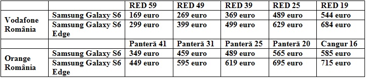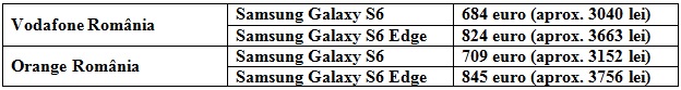 Samsung Galaxy S6 şi Galaxy S6 Edge pot fi precomandate atât la Orange, cât şi la Vodafone. Ambii operatori listează doar versiunile cu 32 GB şi oferă suplimentar un încărcător wireless în limita stocurilor disponibile.