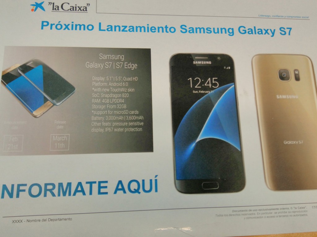 Așa cum bine știam, Samsung Galaxy S7 va avea un ecran SuperAMOLED de 5.1 inch, iar S7 Edge va urca până la 5.5 inch și va avea marginile curbate pe laterale. Apoi, specificațiile sunt aproape identice între cele două dispozitive, doar bateriile fiind ușor diferite în capacitate: 3000 mAh pentru S7, respectiv 3600 mAh pentru varianta Edge.