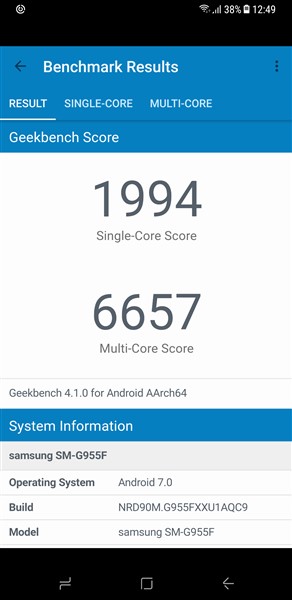 Teste de benchmark rulate pe Samsung GALAXY S8 Plus;