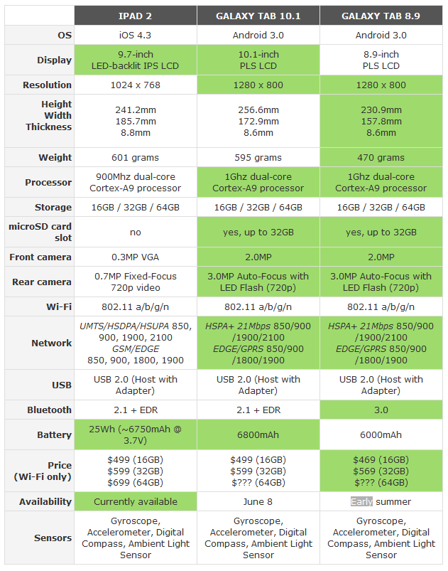 Samsung Galaxy Tab 8.9 vs iPad 2 vs Samsung Galaxy Tab 10.1 [infografic]