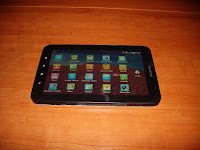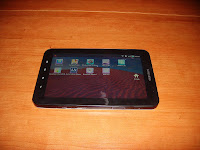 2. Hardware şi sistem de operare – procesorul Samsung Intrinsity este tactat la 1 Ghz fiind însoţit de un procesor grafic regăsit şi pe Galaxy S plus 512 Mb RAM. Sistemul de operare este Android 2.2 FroYo şi cu siguranţă va fi primi un upgrade la 2.3. Presupun că va putea rula şi Android 3.0 aştepta pentru mijlocul anului cu mare interes deoarece tabletele pc sunt specialitatea sa.  Iconurile sunt mari, s-ar putea să deranjeze la început până vă adaptaţi. Se vede că este un os portat de pe mobile pe o tabletă. În testul Quadrant a impresionat obţinând puţin peste 1000 de puncte (mai precis 1010 puncte întrecând Galaxy S, Nexus One, HTC Desire, dar sub Motorola Droid X, HTC Evo sau Nexus One cu Android 2.2). O să apreciaţi faptul că nu apar blocaje în s.o., este fluentă în operare.