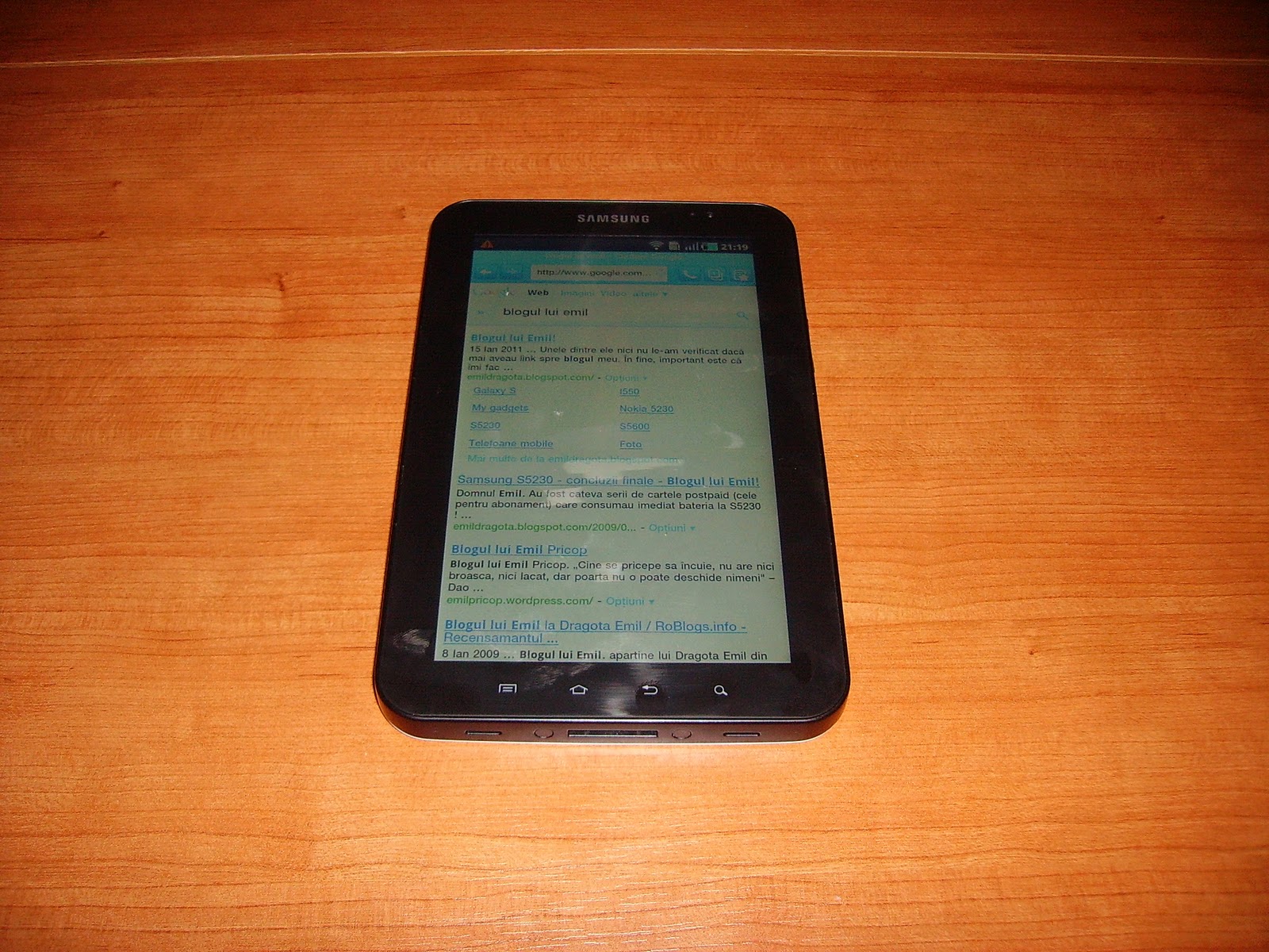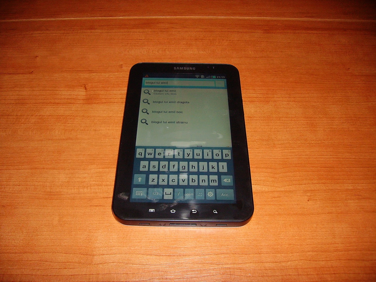 3. Conectivitate – 3G cu transfer de date la nivel HSDPA şi HSUPA, Wi-Fi b/g/n, bluetooth 3.0, GPS. Este o adevărată plăcere să faci browsing pe Galaxy Tab, să scrii pe twitter sau facebook. Nu trebuie să adaptezi privirea la caracterele afişate pe un display de sub 4 inch. Aici este mai “natural”. Relaţionezi mai bine cu informaţiaş şi reacţionezi mai prompt. Tastatura touchscreen de aici poate fi accesată atât în modul landscape sau portrait. Eu am mers pe a doua variantă deoarece degetele parcurg mai greu tastele situate la orice diferenţă în landscape. :) L-am folosit într-o zi ca telefon. Recomandat să apelaţi la căşti dacă nu vreţi ca discuţia să fie auzită de cei din jur. Ideea este că Tab se aude tare – cu doar două difuzoare la bază. La un moment dat devenise un fe de media player pentru mine în living.