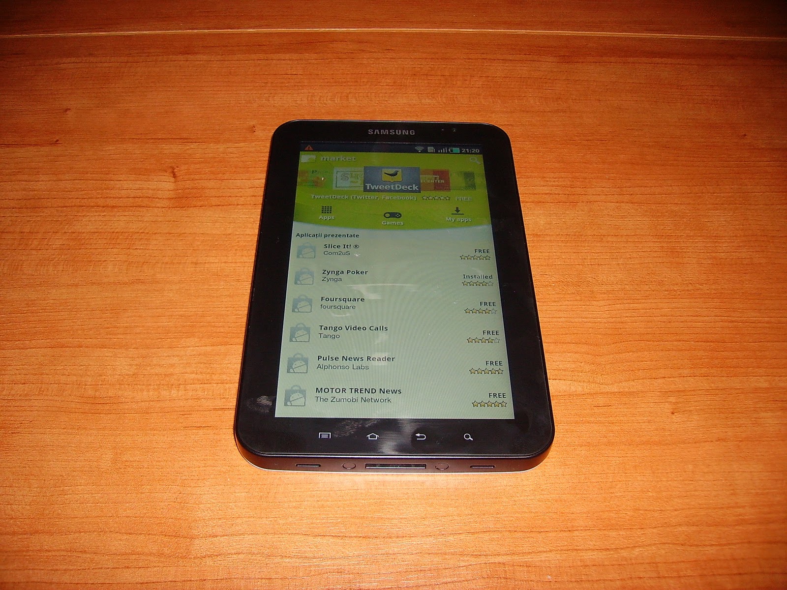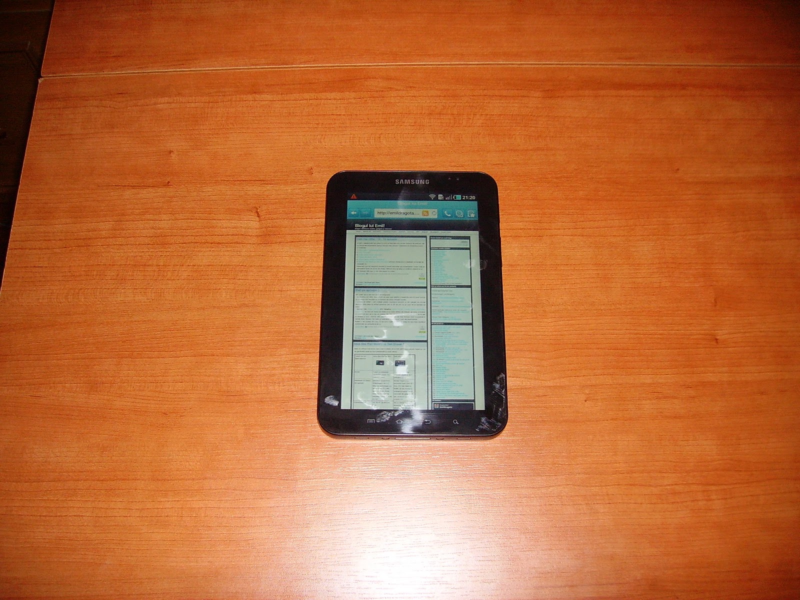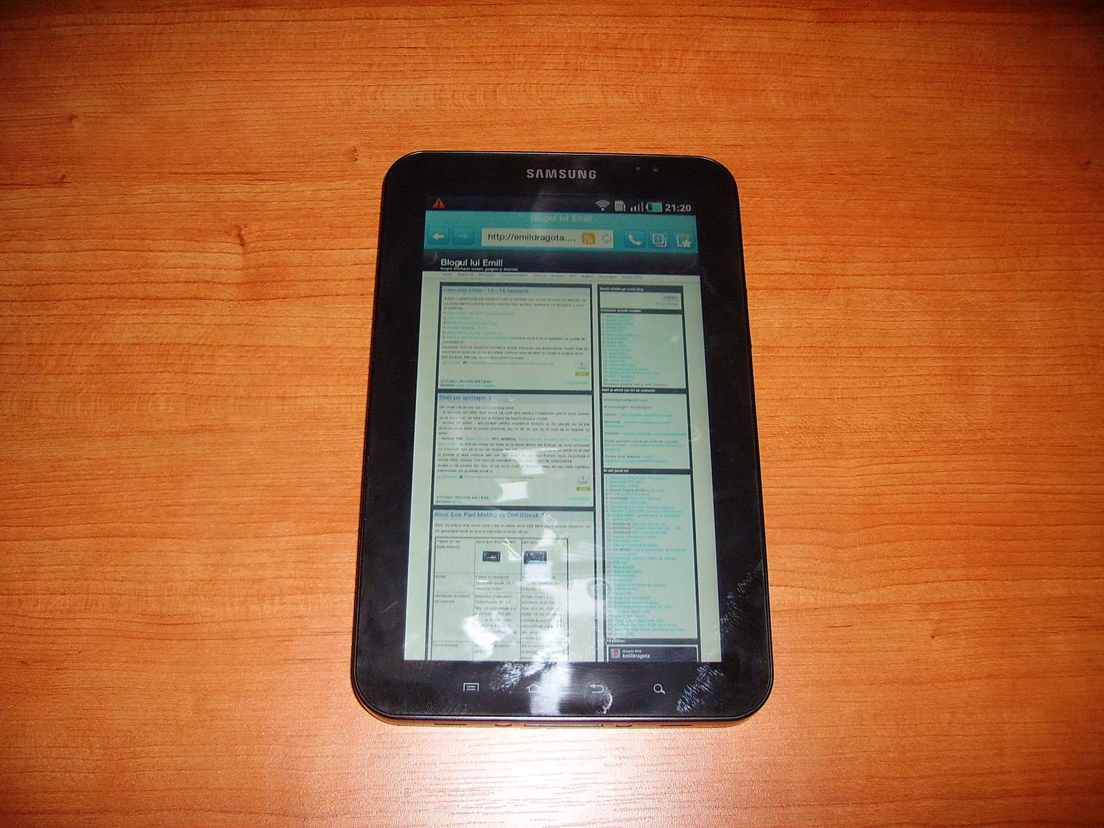 Ecranul TFT impresionează prin dimensiuni, dar nu prin calitate. Mi-a plăcut foarte mult displayul SuperAMOLED de pe un alt produs de casă sud-coreean – Galaxy S. Mi-aş fi dorit să regăsesc un SuperAMOLED pe Tab, dar am înţeles că datorită unor raţiuni ce ţin de preţ au ales un TFT. Dacă nu mă înşel la un moment dat se vorbea pe blogurile de tehnologie de afară că în 2011 vor “porta” AMOLED şi pe Galaxy Tab. Touchscreenul este implementat serios şi nu cred să fie vreun alt device mai precis. Şi accelerometrul în jocuri îţi permite să faci lucruri de fineţe. :)