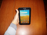 1. Design şi ecran – prin prisma dimensiunilor atrage atenţia din momentul în care o scoţi la vedere. Mare parte a celor care o văd şi sunt neavizaţi în domeniu o confundă cu un gps, ramă foto şi spre surprinderea mea puţini îi spun “telefon”. Bineînţeles că şi mai puţini o identifică corect – tablet pc. Cred că de pe acum vă daţi seama câte cunoştinţe în domeniu au cei din .ro. Targetul pentru o tabletă pc este redus în ţara noastră, dar o sumă de entuziaşti au “riscat” şi au pe acasă un device de acest fel.