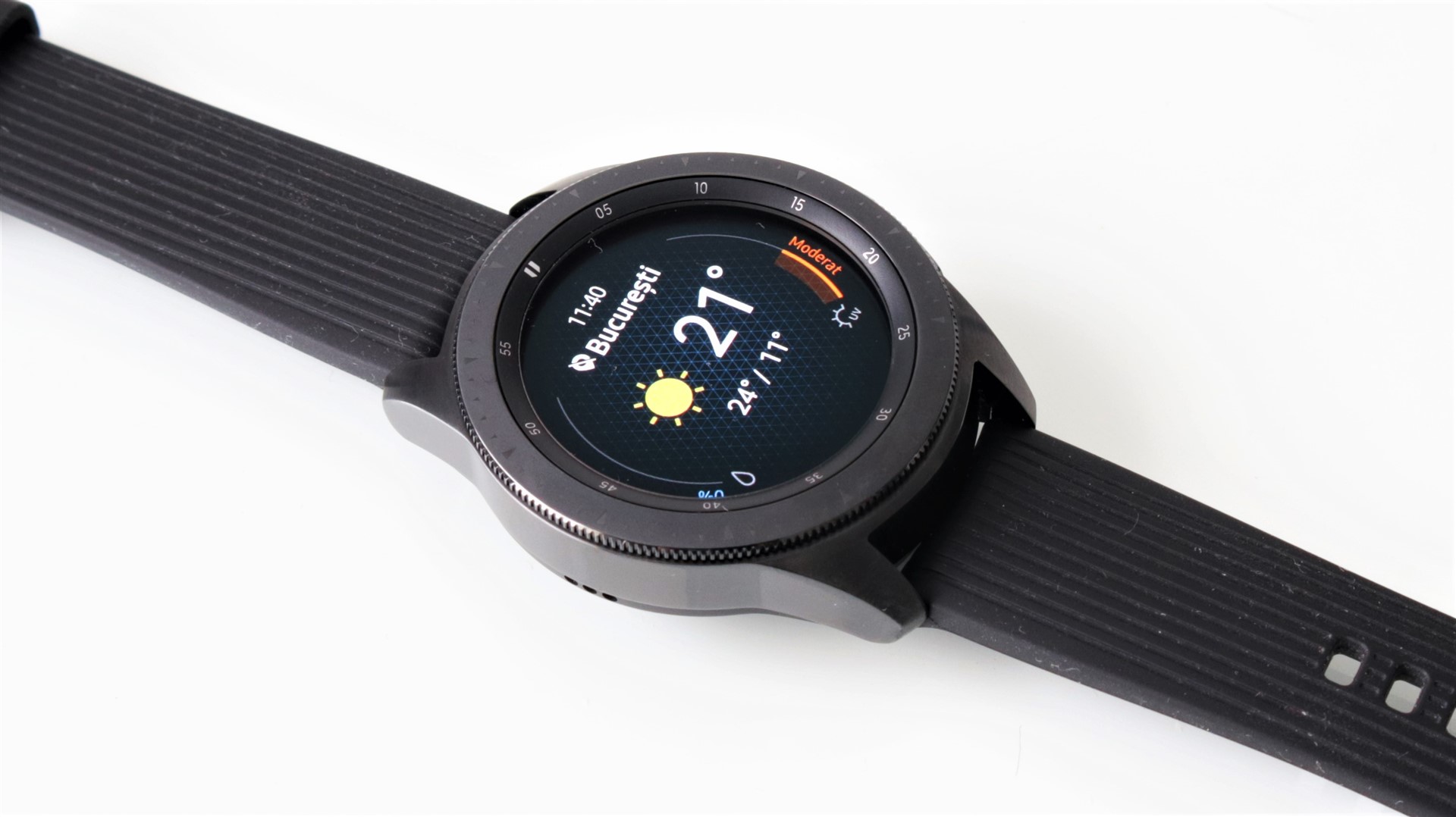 În cazul modelului primit la review avem de-a face cu un display Super AMOLED circular de 1.2 inch. Rezoluția este de 360 x 360 pixeli și astfel se crează o densitate de 278 ppi, pe care am găsit-o suficientă indiferent de conținutul afișat. Totul apare foarte bine conturat și nu sunt probleme nici cu cele mai mici fonturi.