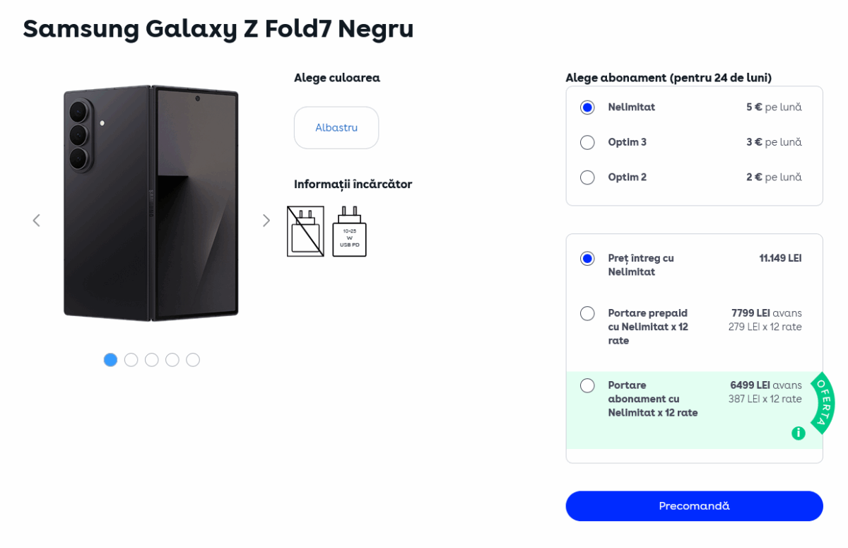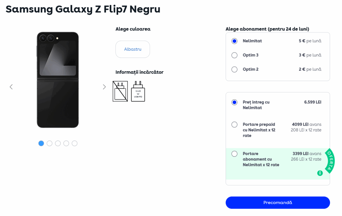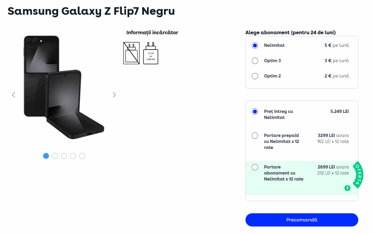 - Portare abonament către un pachet Digi Optim / Nelimitat – 6499 lei avans şi 12 rate x 387 lei / lună.