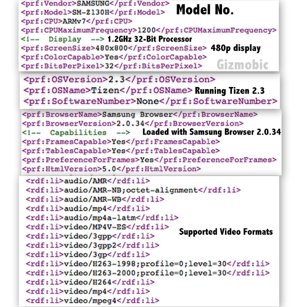 Primele informaţii despre un smartphone entry-level au apărut zilele acestea pe internet. Vorbim despre Samsung SM-Z130H care va rula Tizen versiunea 2.3. Ca specificaţii probabile, discutăm de un procesor quad-core tactat la 1.2 GHz (probabil un Snapdragon 400), display de 4 inci cu rezoluţie 480 x 800 pixeli cu o densitate a pixelilor de 288 ppi, 512 MB memorie RAM şi cameră foto de 3.2 megapixeli.