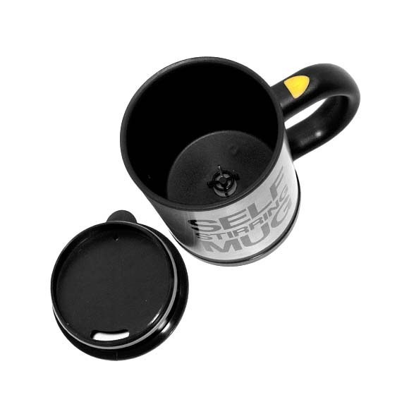 Căutând o soluţie pentru zgomotul enervant emis de linguriţă, am găsit o cană mai mult decât interesantă. Aceasta se numeşte Self Stirring Mug şi îţi amestecă orice fel de lichid fără zgomot şi efort din partea ta. Cana este confecţionată din plastic şi oţel inoxidabil, iar pe fundul său există un mic disc rotativ care prin intermediul a două baterii de 1.5V (AAA) îţi poate face dimineţile mai uşoare. Pe mâner există un buton care acţionează discul, iar prin apăsarea sa are loc procesul de amestecare.
