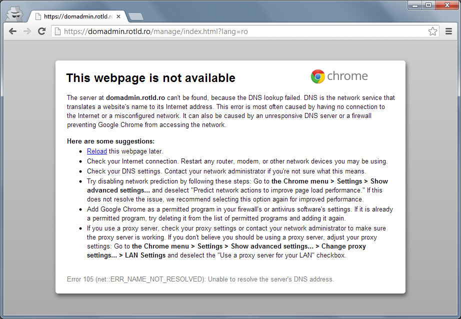 ROTLD – Romanian Top Level Domain – are probleme din ce în ce mai mari. De câteva ore panoul de administrare al domeniilor .ro, aflat la adresa https://domadmin.rotld.ro, nu mai poate fi accesat. De asemenea și adresa http://portal.rotld.ro, pe care ar trebui să găsim știrile/anunțurile ROTLD, este offline.
