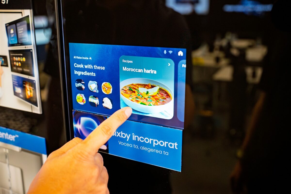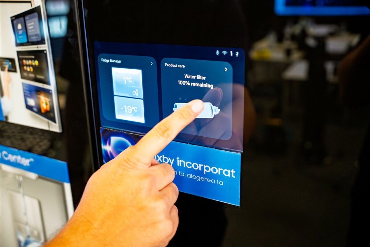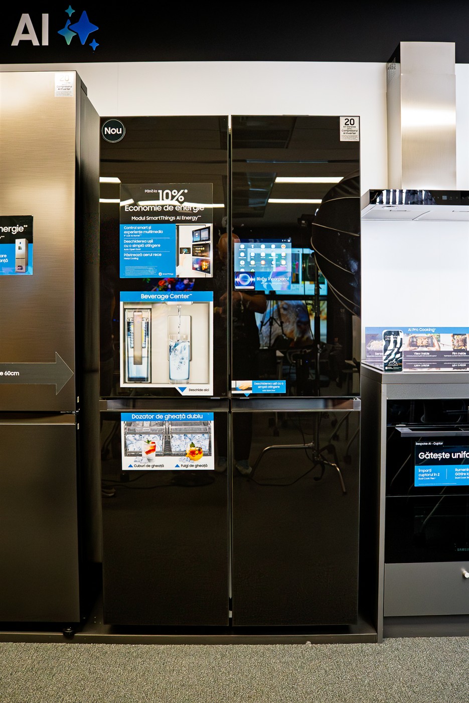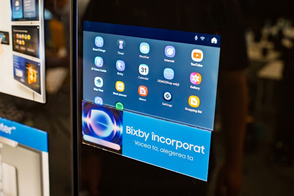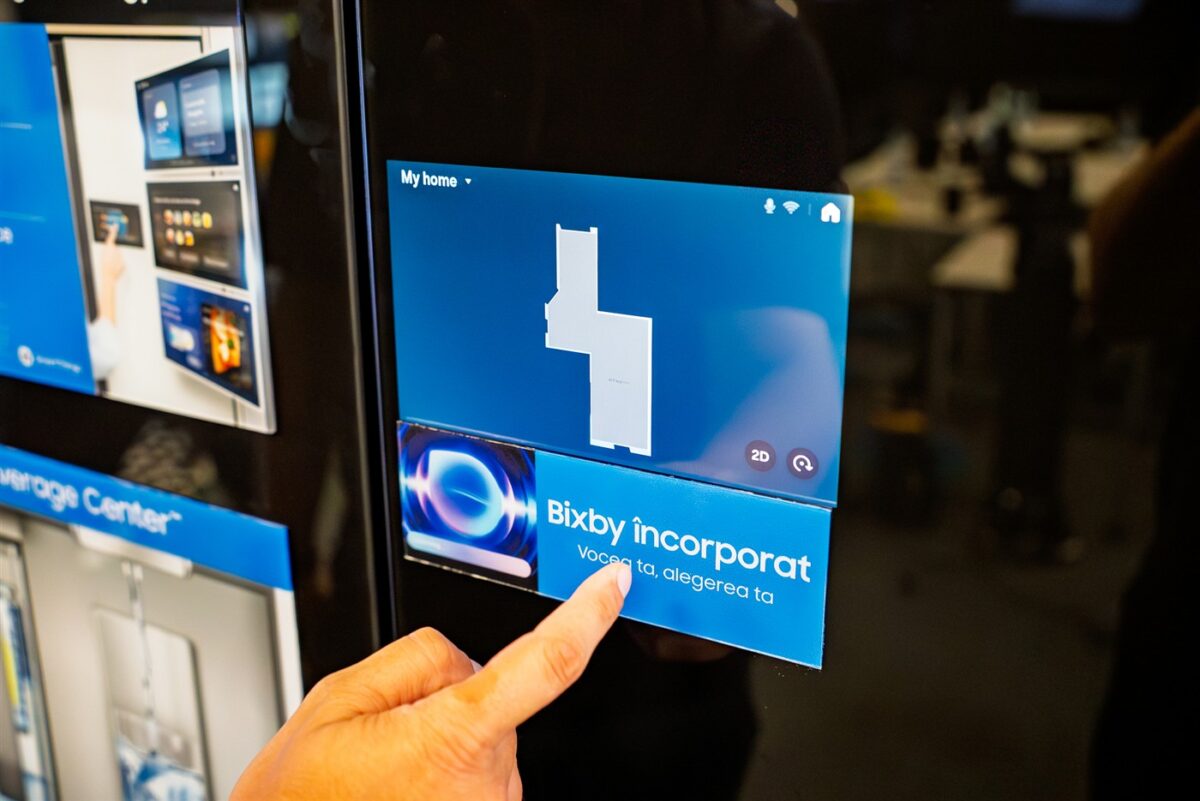 AI Home este denumită tehnologia adusă în spatele ecranului de 9 inci. Transformă frigiderul într-un veritabil hub și de aici poți să controlezi alte dispozitive înrolate în ecosistemul SmartThings. Poți să pornești / oprești un TV sau un robot de aspirare.