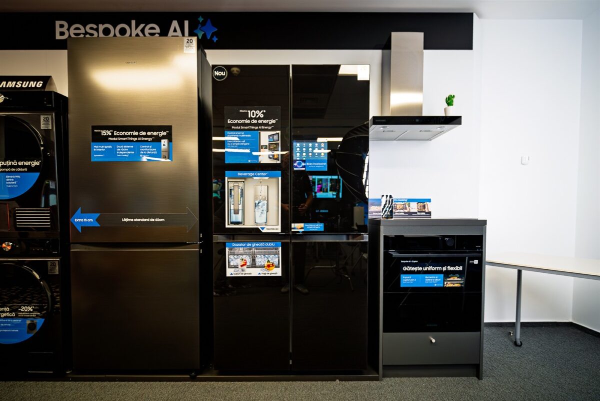 SmartThings AI Energy se bazează pe tiparele de utilizare ale side by side-ului Samsung și estimează consumul de energie pe baza algoritmilor AI. Am înțeles că ar putea reduce consumul cu până la 10% și asta înseamnă economie la factura de electricitate.