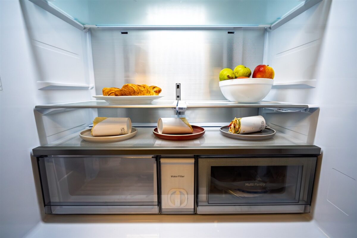 Multi-pantry (3 moduri) permite păstrarea de diferite tipuri de alimente și băuturi la temperatura adecvată. Este un sertar controlat indepdenent ce îi poți seta diferite temperaturi prestabilite, iar cele 3 moduri sunt Fructe și Legume, Băuturi și Carne și Pește.