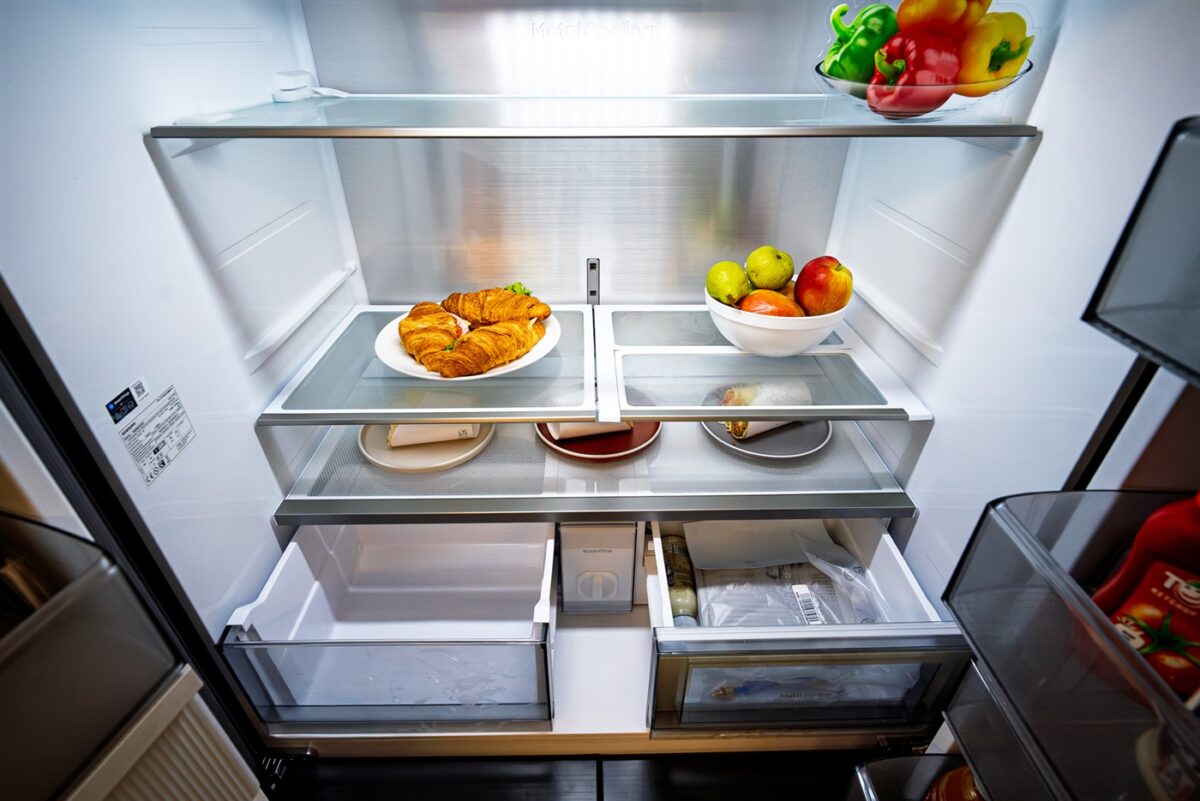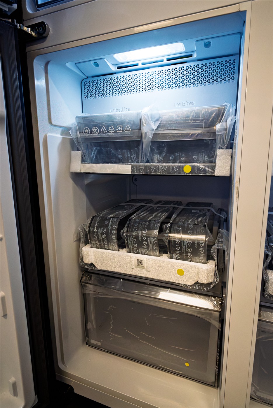 Adevărul este că atunci când side by side-ul are toate cele 4 uși deschise, este de-a dreptul uriaș cu ai săi 654 litri. Sunt o sumedenie de rafturi la congelator și la frigider, astfel încât poți stoca multe alimente la interior.