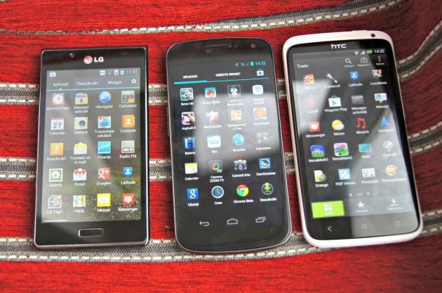 Se vede plusul uriaș de la single core la dual core și asta mai ales că l-am ales pe LG Optimus L7. HTC One V se comportă mult mai bine. Se vede un lag deranjant la Optimus. Galaxy Nexus rulează Android 4.0 nativ, fără vreo interfață care să-i știrbească din viteză. LG impresionează prin display-ul de 4.3 inch cu o luminozitate pronunțată. Păcat că nu-l ajută și hardware-ul că altminteri Android 4.0 este destul de ofertant. Ar fi fost mai ok Android 4.0 de la LG pe Optimus 2X cu Tegra 2 la 1 GHz.