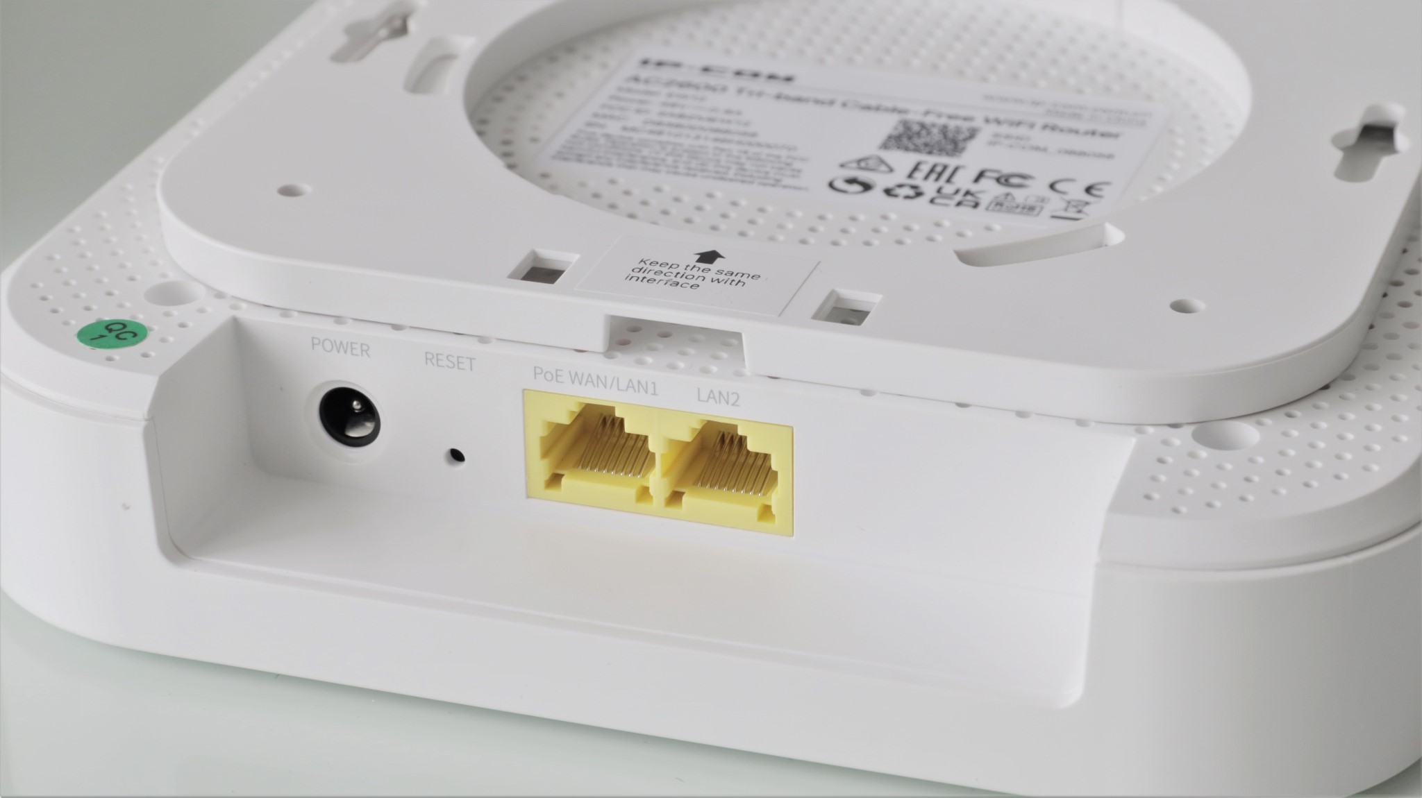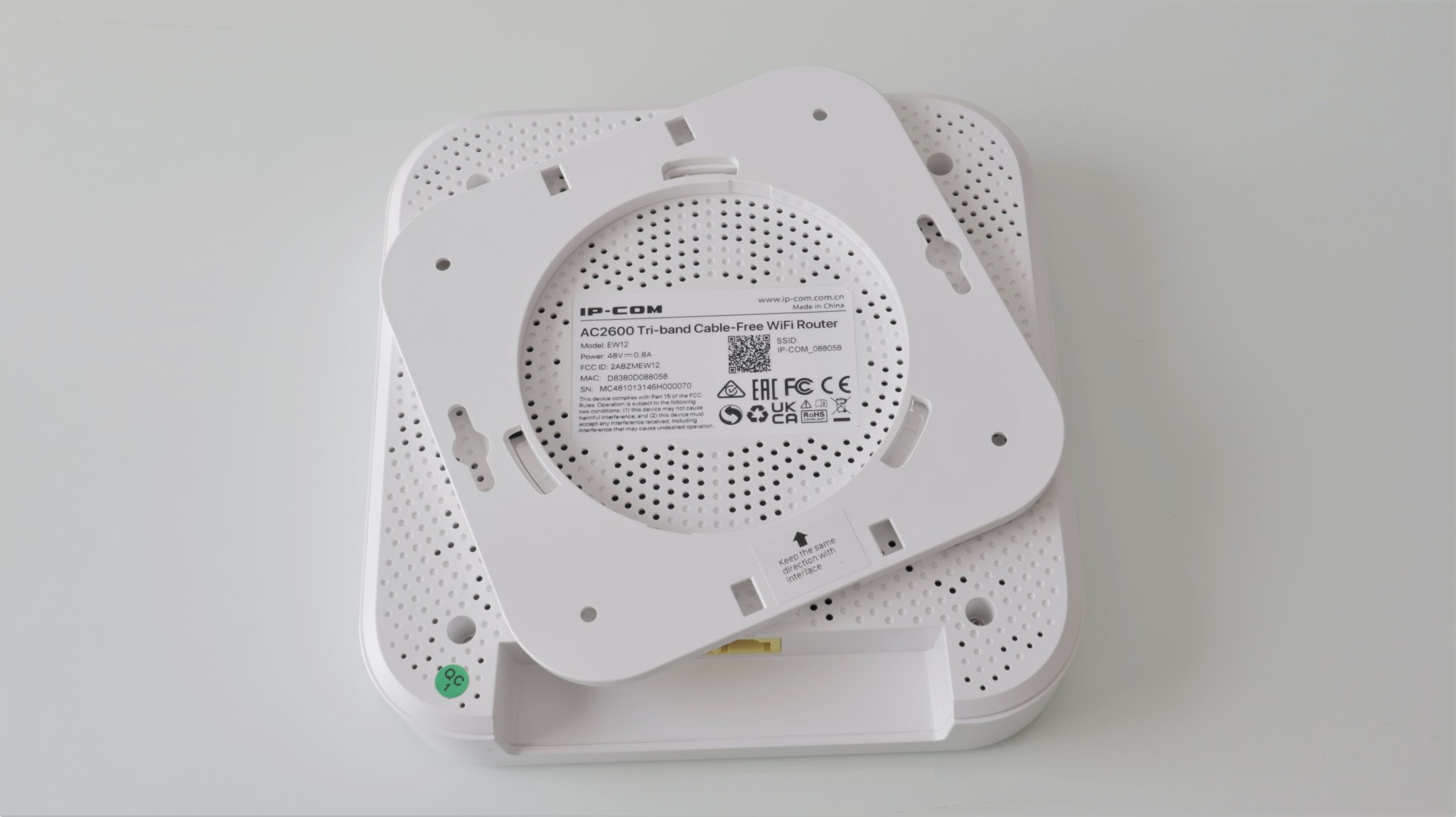 Montajul pe tavan sau perete se poate face prin prinderea mai întâi a suportului detașabil, urmând ca apoi să fixezi router-ul prin intermediul mecanismului prin rotire.