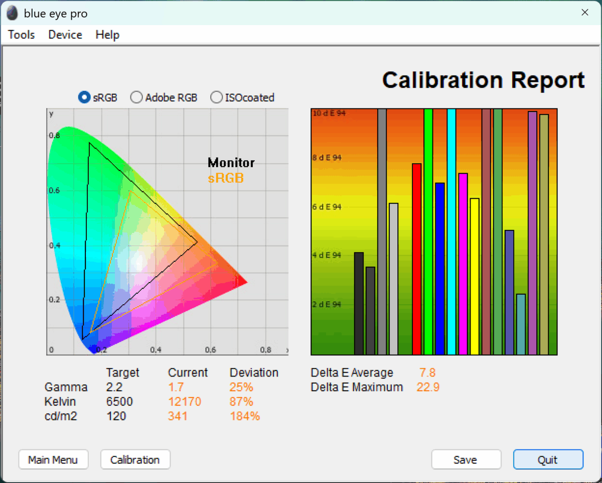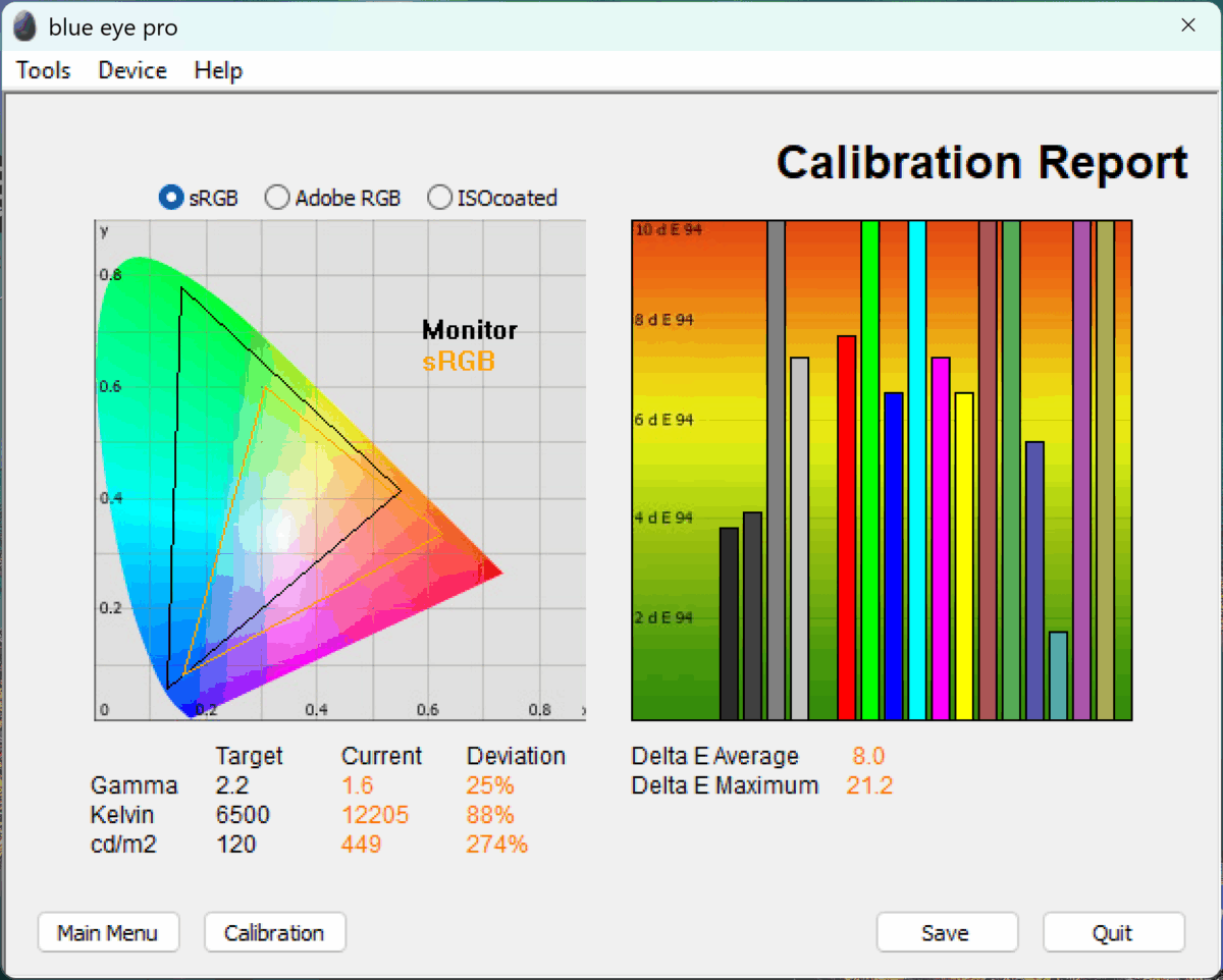 - ca precizie a culorilor, panoul nu este cel mai exact calibrat din fabrică (potențial pentru a obține nuanțele corecte există din plin, fiind nevoie de ceva ajustări).