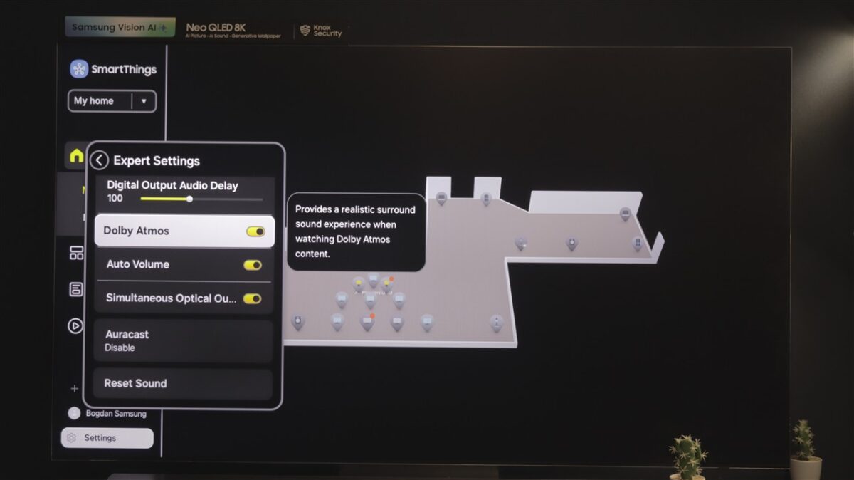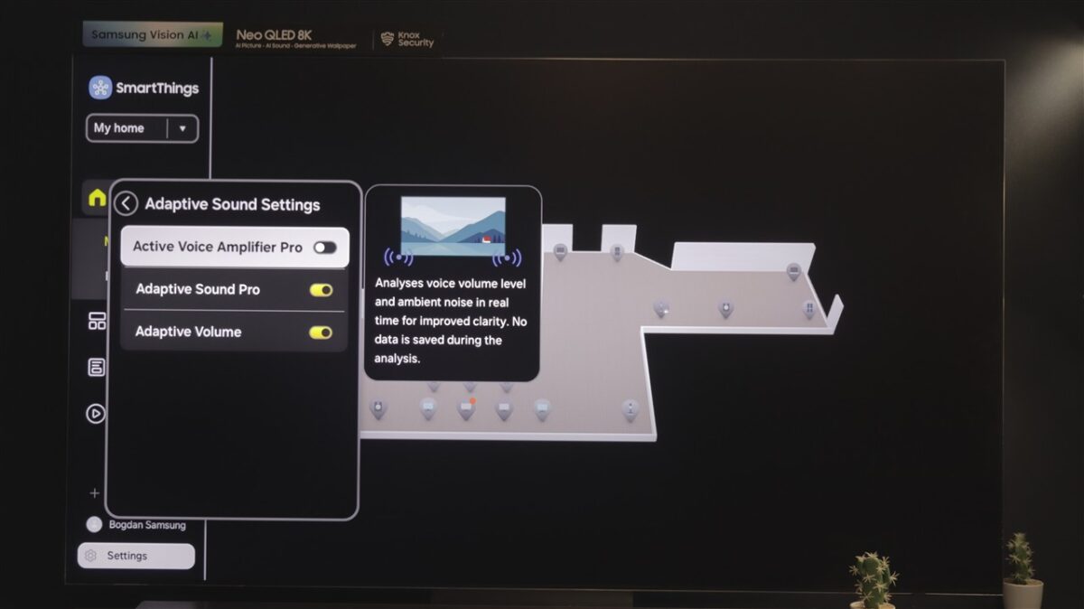 Am tot amintit de AI și de procesorul de imagine care poate susține aceste funcții avansate, fiindcă alături de Samsung 75QN990F chiar am văzut ce poate face Inteligența Artificială atunci când este bine antrenată. Sincer, tot ce înseamnă suita Vision AI chiar lucrează cu spor spre a genera cea mai bună imagine, cele mai bune cadre indiferent de conținutul pe care televizorul îl are la dispoziție.