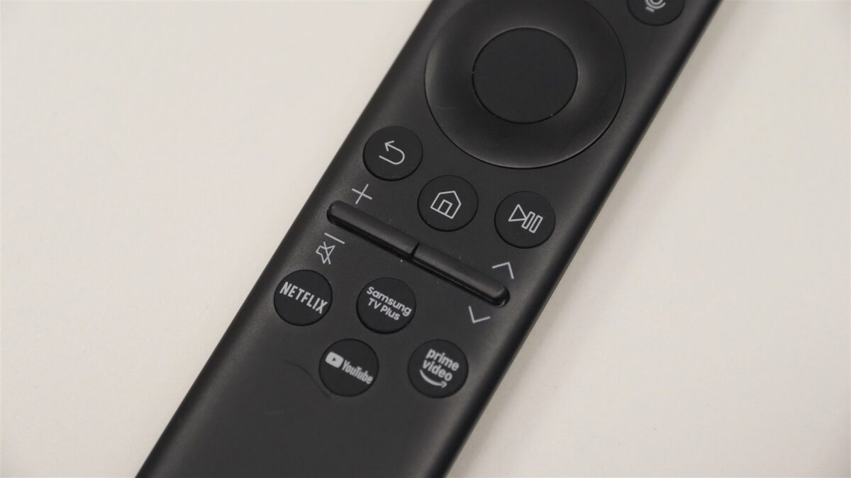 În altă ordine de idei, telecomanda model TM2360E este micuță, subțire și foarte ușoară, se așează bine în mână și permite un control facil asupra tuturor funcțiilor televizorului, Nu are butoanele numerice, ceea ce ar putea fi ușor deranjant pentru unii, dar la un astfel de televizor flagship, precum este Samsung 75QN990F, nu știu câți vor sta prea mult timp să urmărească posturile clasice TV în loc să vizioneze conținut de calitate înaltă, gen 4K HDR nativ.