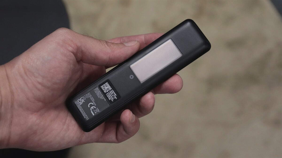Telecomanda este și ea ceva mai specială, în sensul că, la fel cum am mai întâlnit și în trecut, aceasta nu mai are nevoie de baterii pe care să le schimbi din timp în timp, având acumulator integrat. Acesta poate fi încărcat în mod clasic, prin intermediul portului USB-C, dar nu cred că va fi nevoie ca cineva să apeleze la acesta, fiindcă telecomanda are pe spate un micuț panou solar care pune energie înapoi în acumulatorul integrat ori de câte ori are ocazia. Așadar, ideal ar fi să lăsați uneori telecomanda cu fața în jos, pe butoane cum ar veni, spre a prinde ceva raze solare.