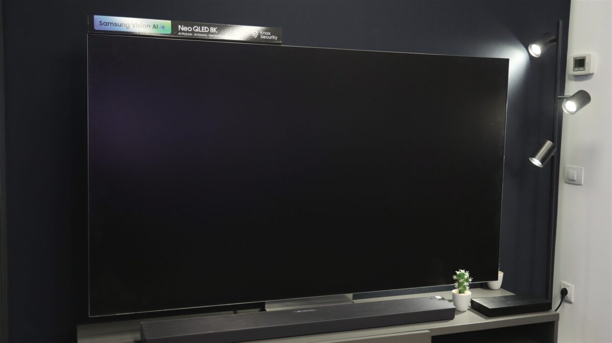 Adăugând în ecuație faptul că panoul este de tip Glare Free, adică este mat și nu prea reflectă mai deloc mediul ambiant, putem înțelege că Samsung 75QN990F se descurcă de minune inclusiv în camere cu multă lumină ambientală, dar chiar și când ai surse de lumină care trimit razele direct spre ecran. Există totuși și un mic inconvenient, abia observabil oricum, în afară de care modelul Samsung 75QN990F nu prea are puncte slabe. Este vorba de acest panou mat, antireflexiv, în sensul că atunci când lumina ambientală ajunge pe ecran la un anumit unghi, iar televizorul redă scene cu obiecte puternic luminoase aflate pe un fundal închis, negru, efectul de blooming este ușor amplificat. Adică, nefiind un panou OLED, care nu suferă de acest efect nedorit de blooming, panoul televizorului Samsung 75QN990F mai poate afișa, în anumite situații, ceva blooming, dar nimic cu adevărat deranjant și, aș spune eu, abia observabil de către cei care nu caută întocmai să găsească acest comportament. Deci nimic grav pe partea de blooming, dar trebuia precizat.