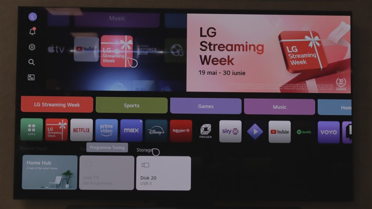 webOS 25 nu se detașează mult de ceea ce știm din trecut, dar mie mi se pare că avem totuși o evoluție, una naturală, care se duce mai tare spre zona simplității în utilizare. Avem și posibilități de personalizare, în special pentru ecranul Home, unde fie poți lăsa sistemul să aranjeze automat cele mai folosite aplicații în ordine, fie poți face tu singur aceste alegeri.