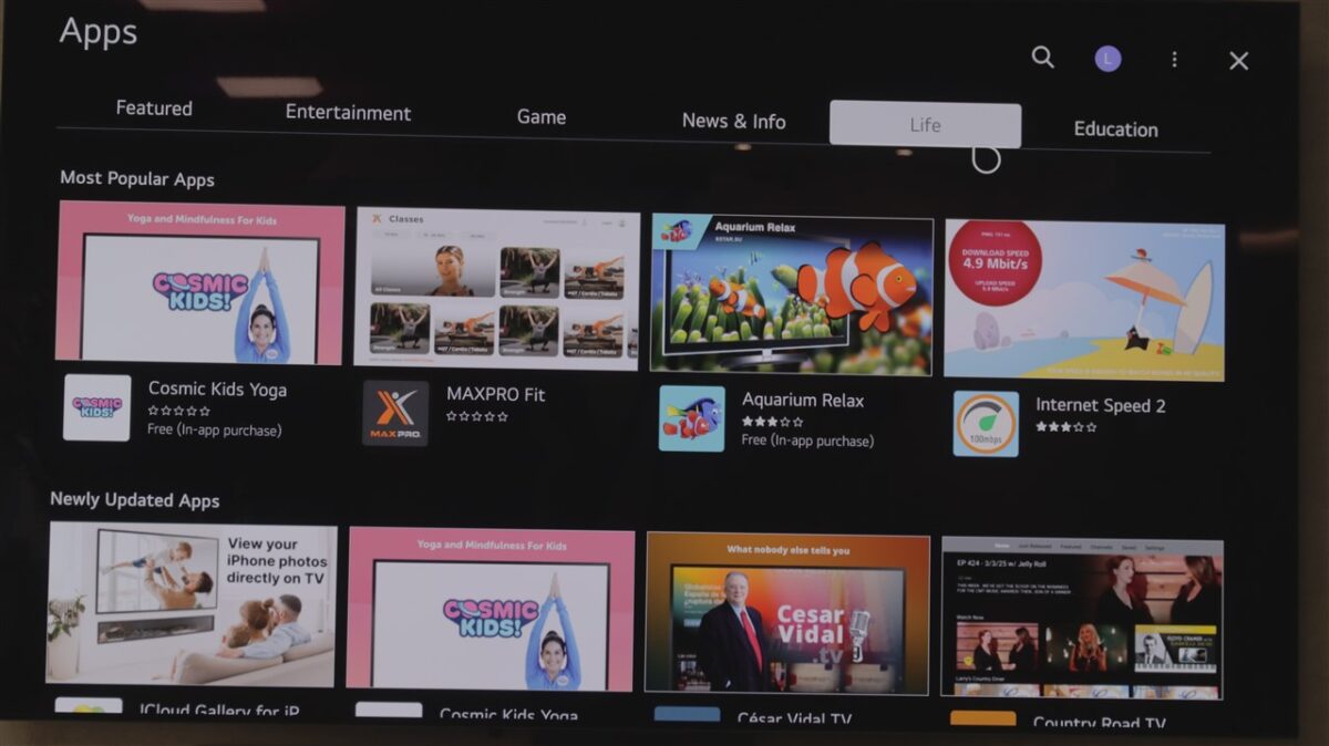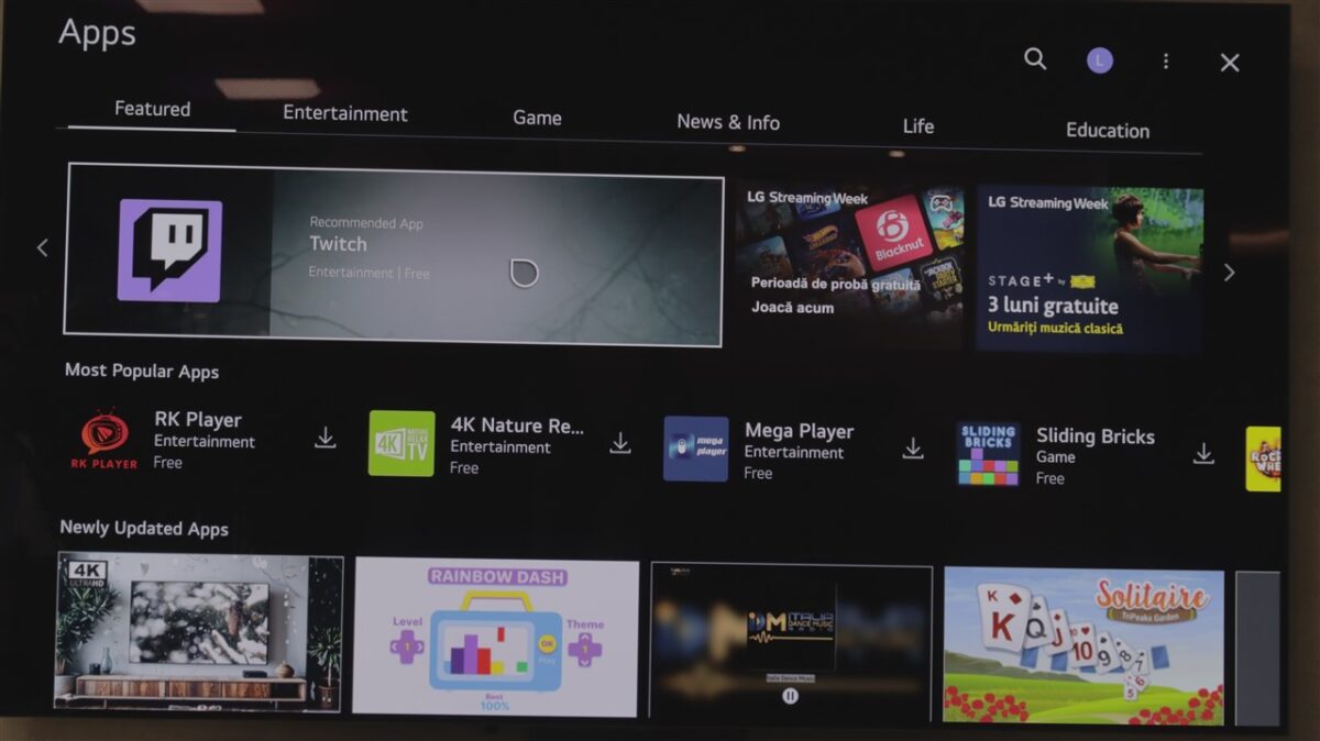 Ca aplicații ce pot fi instalate, nu am găsit vreuna dintre cele cu adevărat importante, gen cele de streaming, care să nu poată fi adusă imediat pe LG OLED evo AI C5 (OLED65C51LA). Așadar, chiar dacă posibilitățile nu sunt totuși atât de vaste precum la sistemul de operare Google TV, eu apreciez că webOS este în continuare unul dintre cele mai evoluate, avansate, dar în același timp simplu de parcurs și înțeles sisteme de operare pentru smart TV.