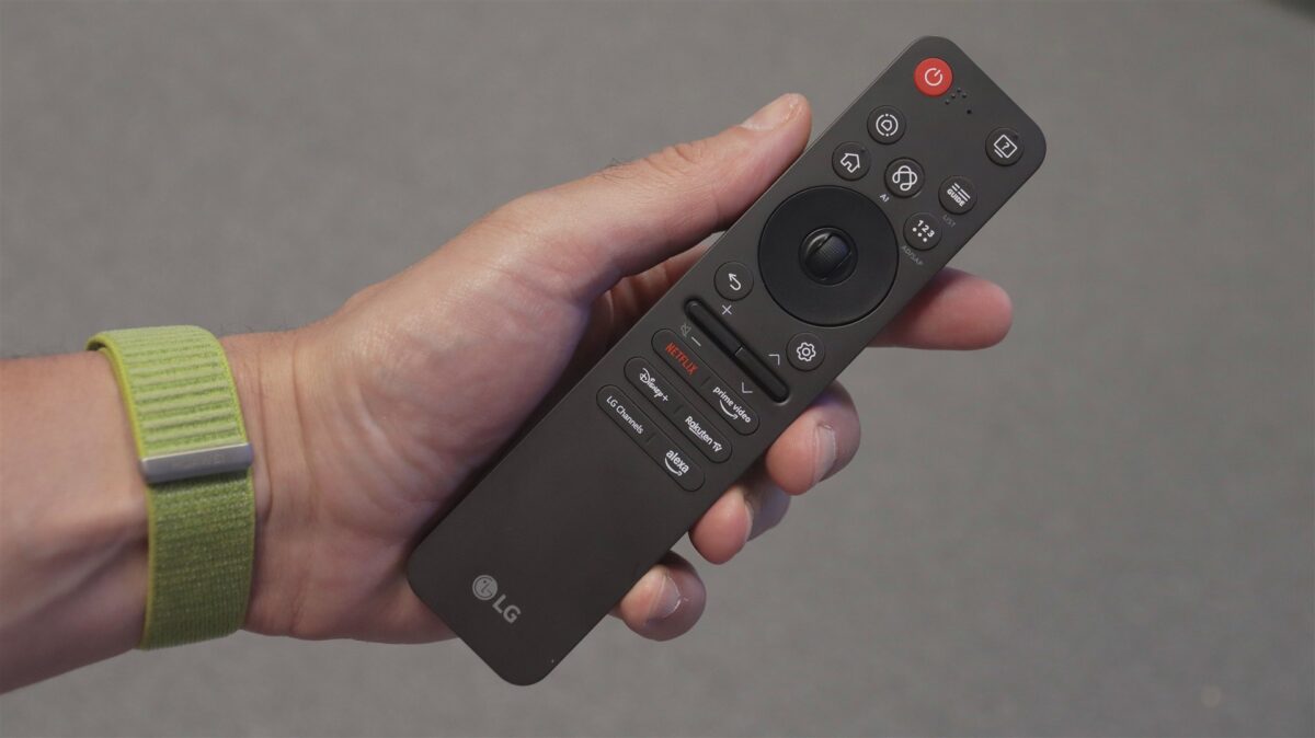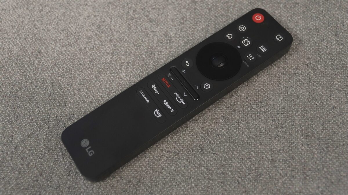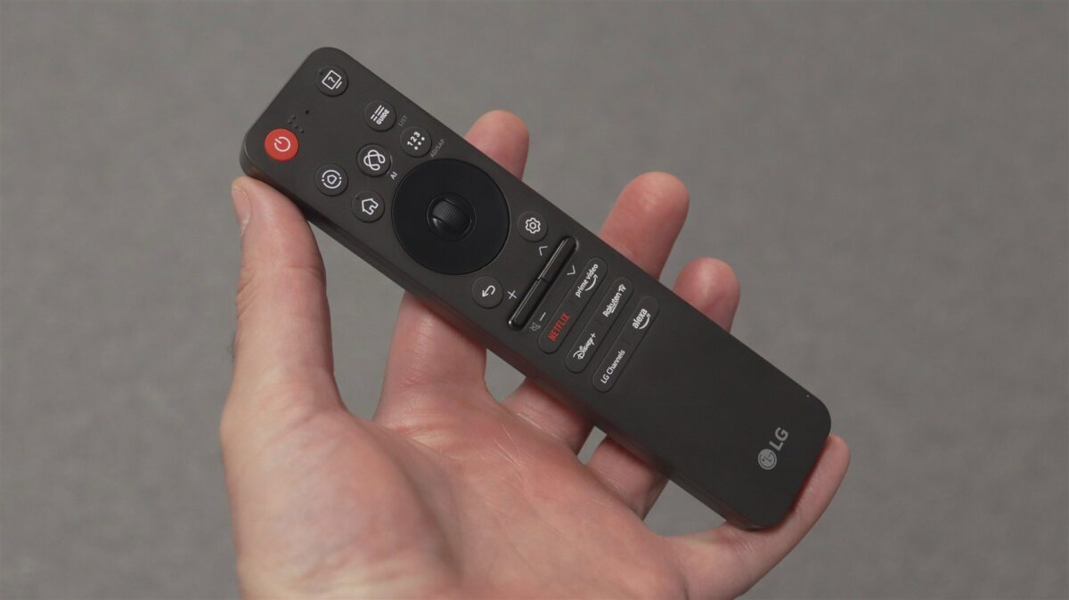 Încă o noutate aici, în cazul LG OLED evo AI C5 (OLED65C51LA). Telecomanda este complet redesenată la această serie, cum de altfel toate noile televizoare LG cu Magic Remote la pachet o vor primi pe aceasta. Este vorba despre un design complet nou, cu un aspect ce se apropie acum de al unei telecomenzi clasice, să o numim. Nu mai avem acea formă îngustă, dar groasă, nu mai este nimic curbat și cu „scobitură” pe spate. Nu, vedem din imaginile de mai jos că noul Magic Remote este ceva mai clasic.