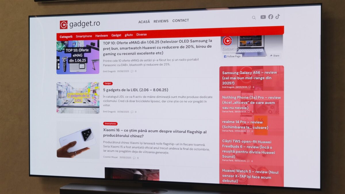 Dacă vorbim despre contrast, atunci bineînțeles că vorbim despre unul uriaș, aproape infinit, grație acelui negru perfect, posibil prin închiderea completă a fiecărui pixel, acolo unde este cazul. Iar la acest contrast imens și la acest negru adânc contribuie din plin panoul care nu a trecut spre unul mat, a rămas aproape glossy. De ce aproape? Fiindcă nu este mat, dar cu reflexiile din mediul ambiant, inclusiv cu luminile puternice, se comportă destul de aproape de cum o face un panou mat. Așadar, reflexii cu mult, mult mai scăzute față de ceea ce știai din trecut, să zicem de la seriile C3, C2 și mai vechi (C4 se comportă și el asemănător, dar parcă reflectă o idee mai tare spațiul ambiant).