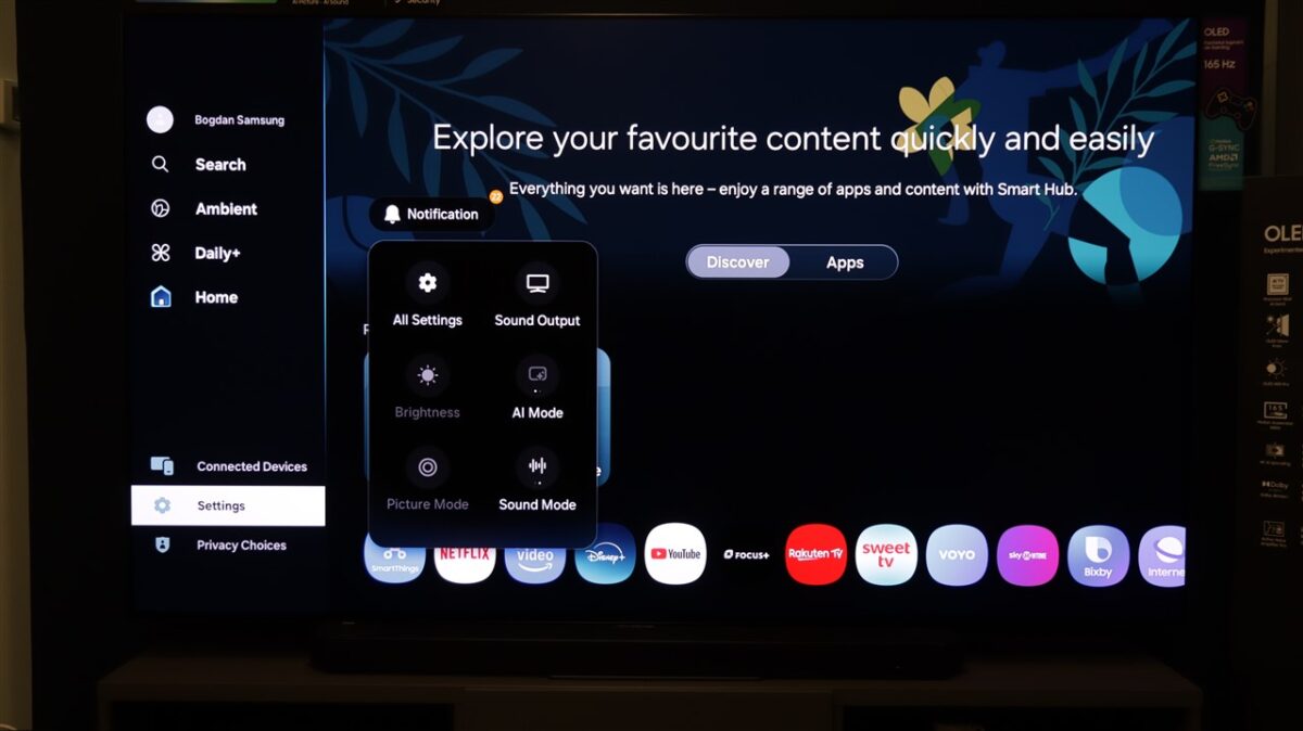 Galerie cu capturi de ecran din interfața sistemului de operare One UI Tizen al televizorului Samsung Vision AI OLED 77S95F: