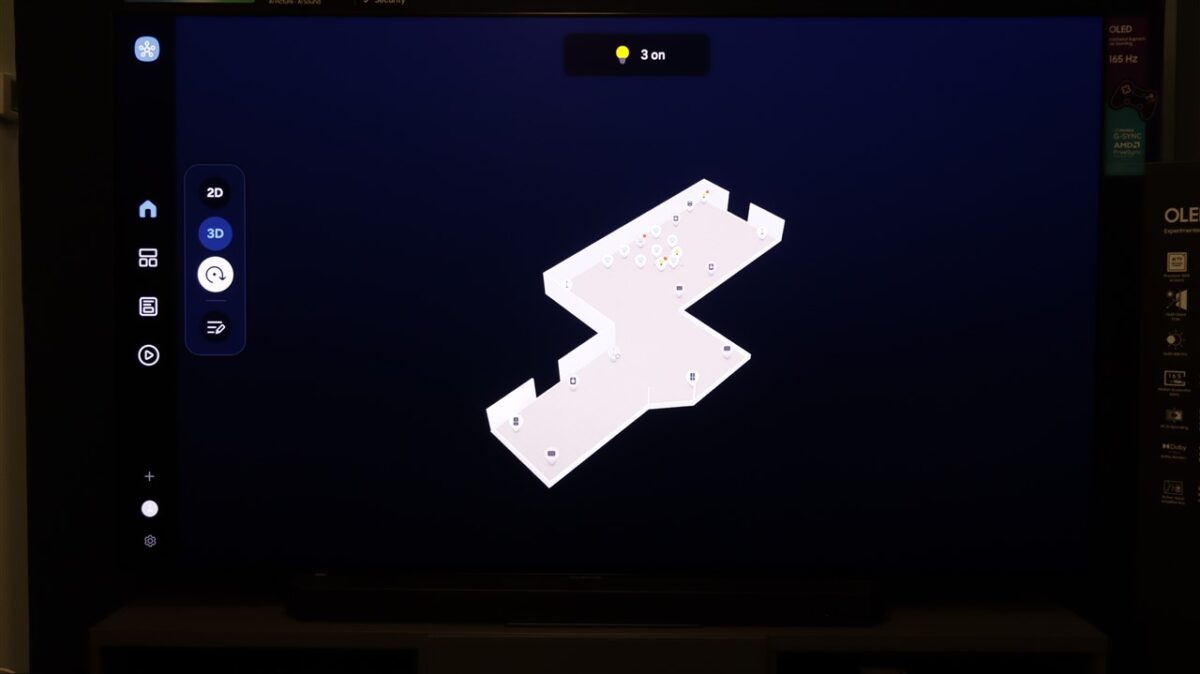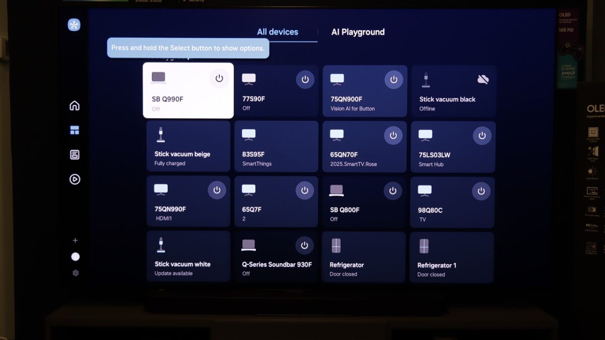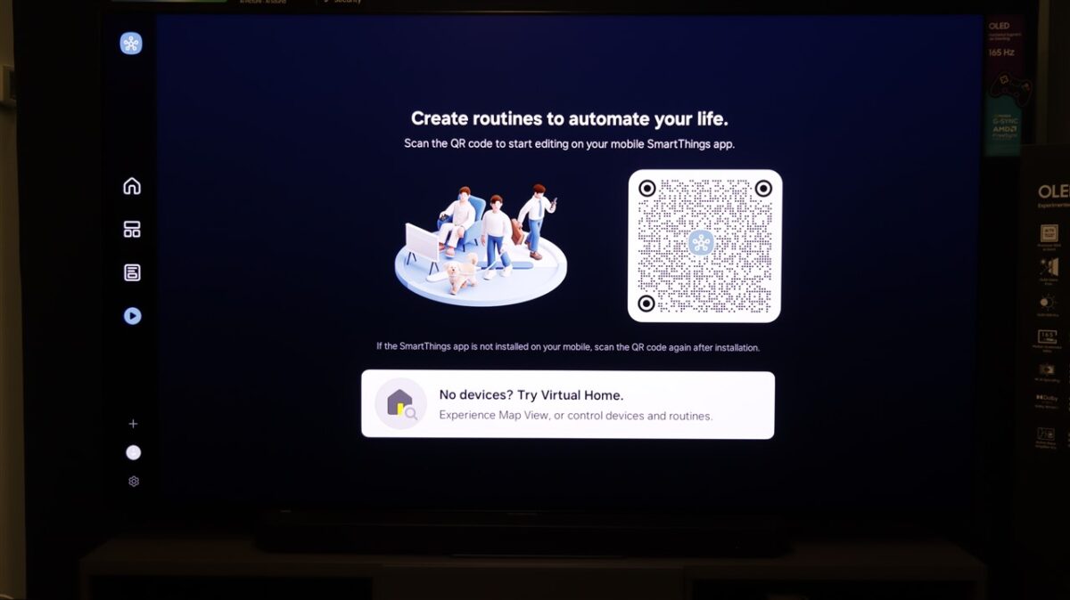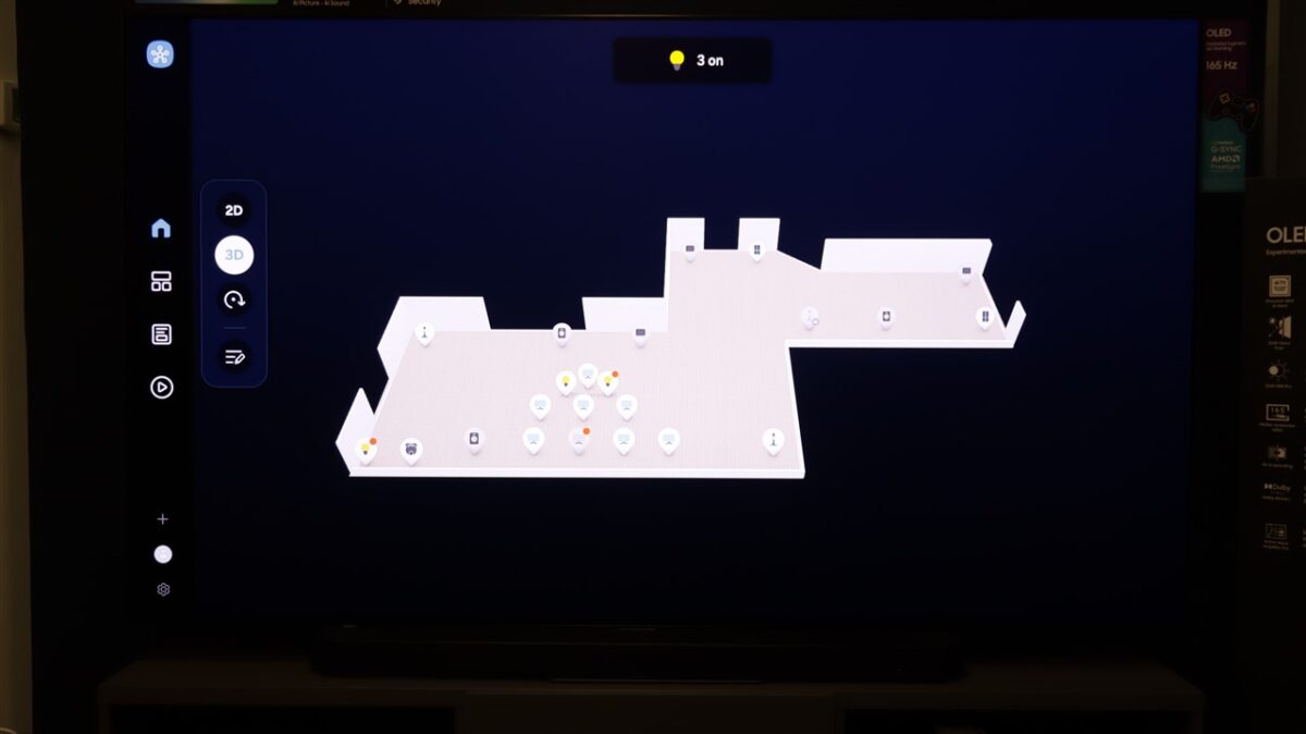 Ce merită de fiecare dată precizat este că mai toate smart TV-urile Samsung recente pot fi considerate adevărate centre de control pentru toate dispozitivele SmartThings. Așa cum putem vedea din imaginile de mai sus, zona dedicată SmartThings de pe Samsung Vision AI OLED 77S95F este foarte aglomerată, asta fiindcă au fost integrate acolo toate electronicele și electrocasnicele inteligente din showroom-ul Samsung. Evident că la nivel de consumator nu vor fi chiar atâtea prezente, dar este impresionant că vezi cum poți interacționa și controla mai toate funcțiile dispozitivelor Samsung SmartThings direct de pe un televizor.