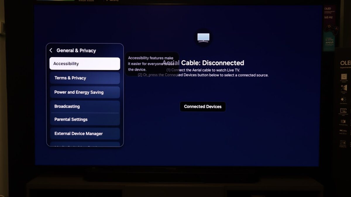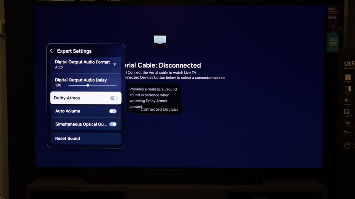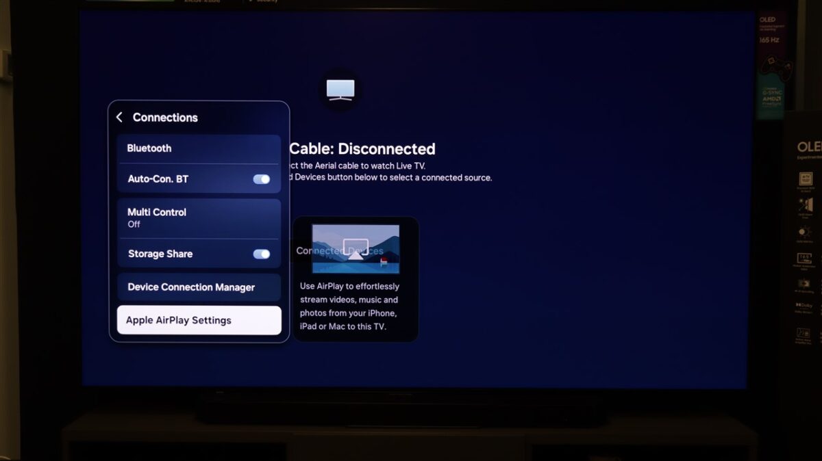 | Conectivitate | Wi-Fi 5 dual-band pe 2.4 și 5 GHz, Bluetooth 5.3, 4 x HDMI (suport 4K 165Hz, 3 x USB-A, 1 x USB-C, 1 x slot CI+ 1.4, 1 x Ethernet LAN RJ-45, 1 x ieșire digitală audio, 4 x intrare RF (antenă / cablu / 2 x satelit) |