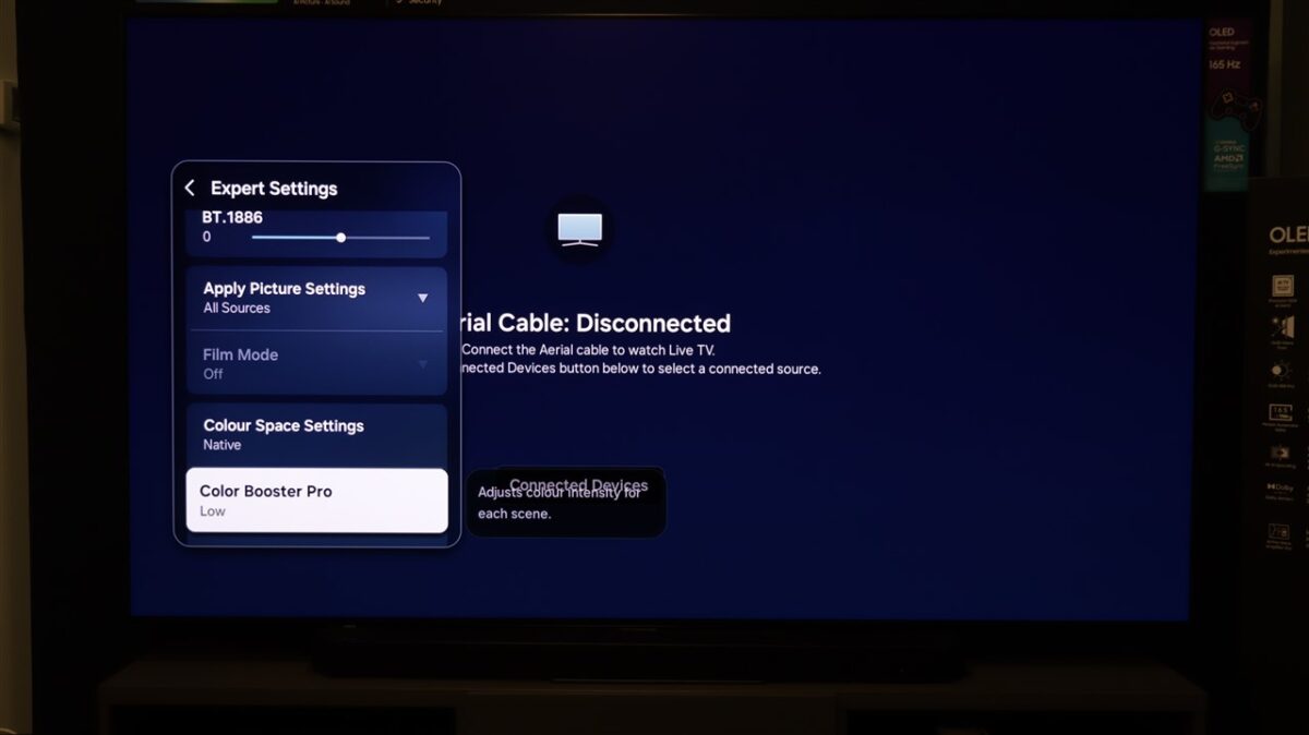 Trebuie să încep cu panoul Glare Free, care mi se pare o evoluție a celui de anul trecut. Este acum și mai puțin reflexiv, ceea nu credeam posibil. Cumva, din orice unghi s-ar „lovi” de ecran orice sursă de lumină, oricât de puternică, aceasta parcă este absorbită total de structura panoului. Pentru cei care vor monta acest televizor într-o încăpere cu multă lumină ambientală, va fi cu siguranță o surpriză extrem de plăcută.