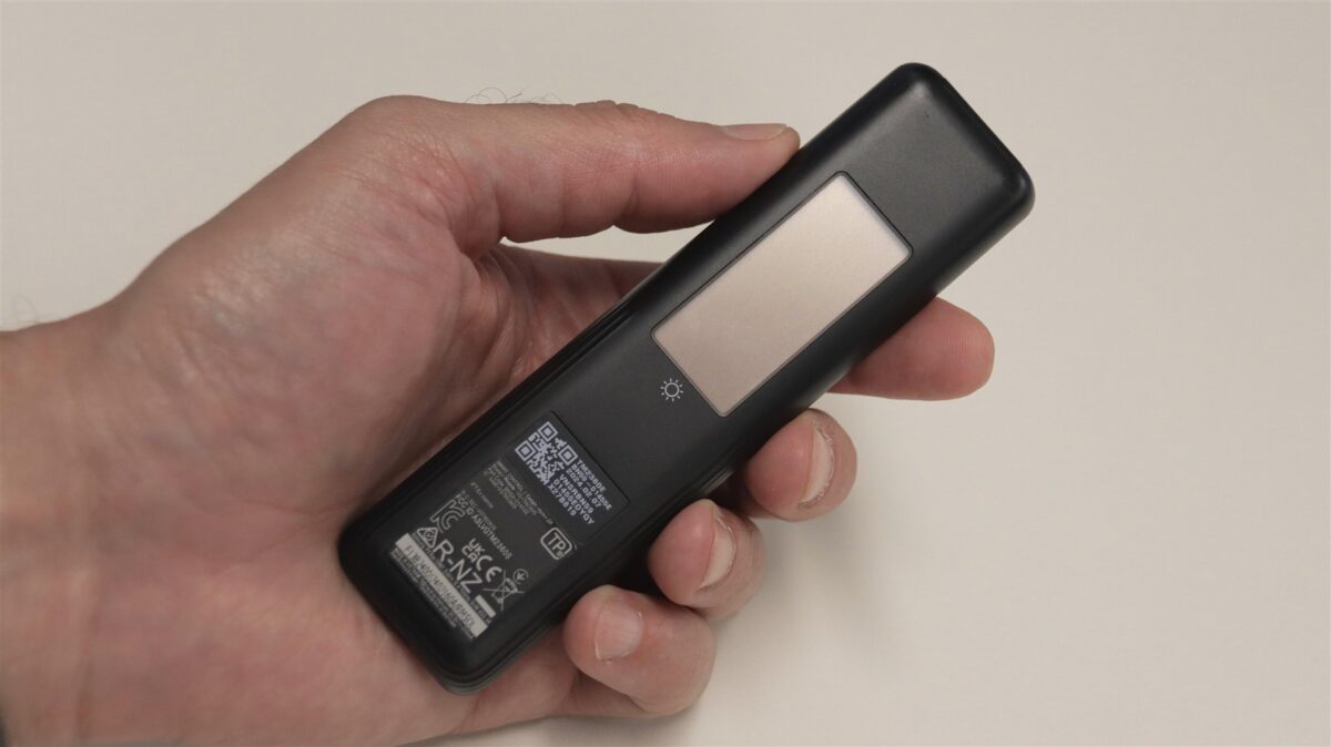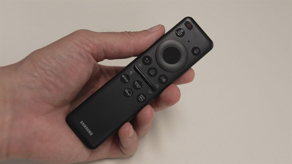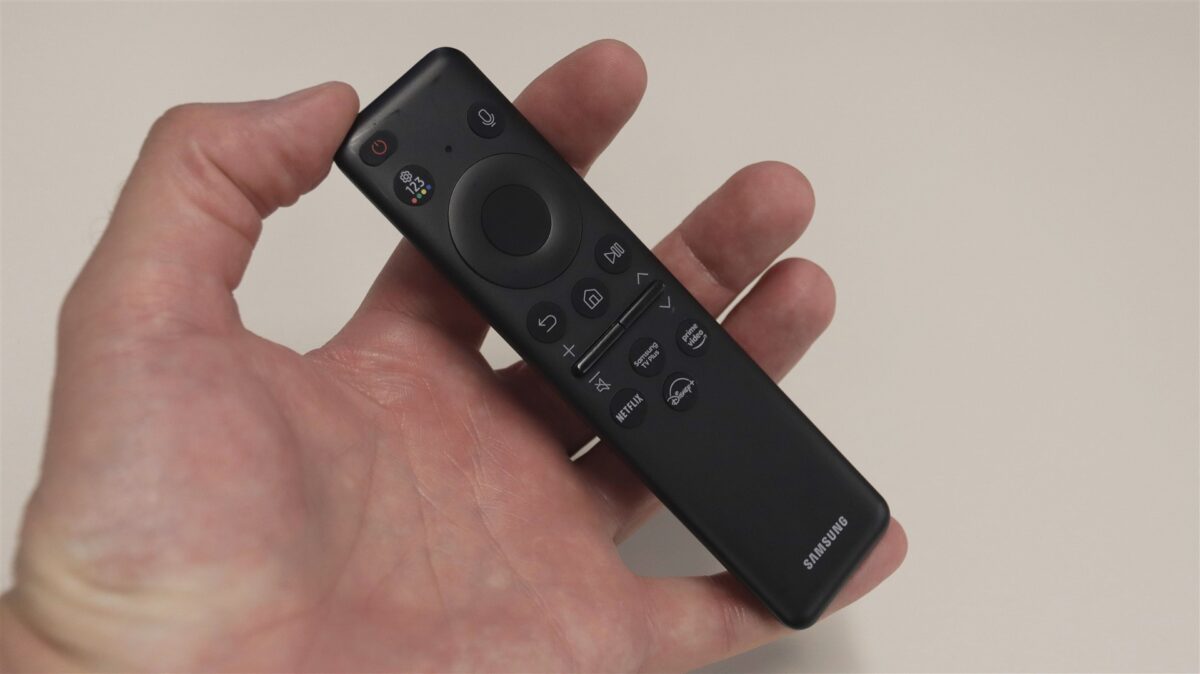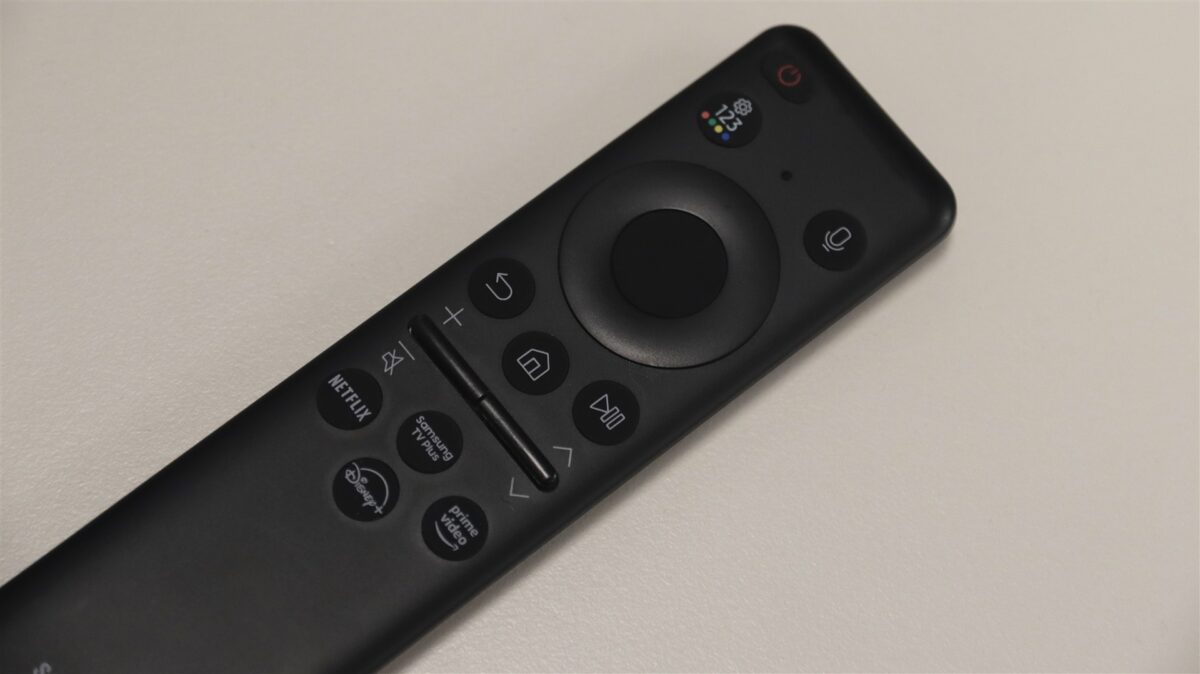 Încă un capitol unde Samsung Vision AI OLED 77S95F punctează bine, chiar dacă nu neapărat de 10. Telecomanda micuță și ușoară, care se așează bine în mână, nu are nevoie de baterii, fiindcă integrează acumulator. Poate că nu este nimic ieșit din comun, dar cu siguranță ceva deosebit este reprezentat de micuțul panou solar de pe telecomanda TM2360E, care înseamnă că nu vei mai fi nevoit să schimbi baterii, dar nici să încarci în mod clasic acumulatorul integrat nu mai este nevoie. Într-adevăr, trebuie să mai așezi din timp în timp telecomanda cu fața în jos și cu precădere spre o sursă de lumină, ideal cea naturală, dar asta nu mi se pare deloc ceva greu de reținut și de făcut. Și chiar dacă uiți să faci asta, există și un port clasic USB-C prin care poți încărca acumulatorul din telecomandă.