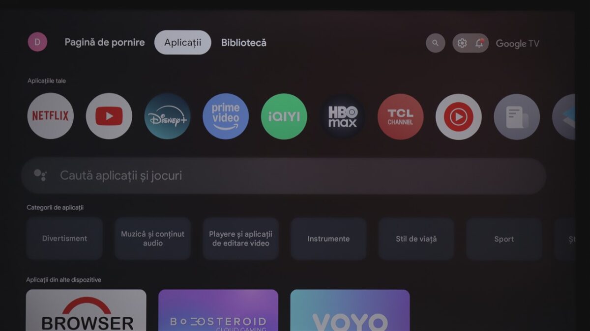 Dacă trebuie să vorbim despre Google TV 12, nu ar fi prea multe de spus. Este acel sistem de operare pe care Google îl tot ajustează și optimizează (cât de cât…) încă de când se numea Android TV. Este tot mai simplu, cu un ecran Home mai aerisit, dar cu tot atâtea zeci de mii de aplicații dintre care poți alege din magazinul oficial.