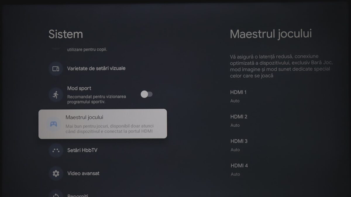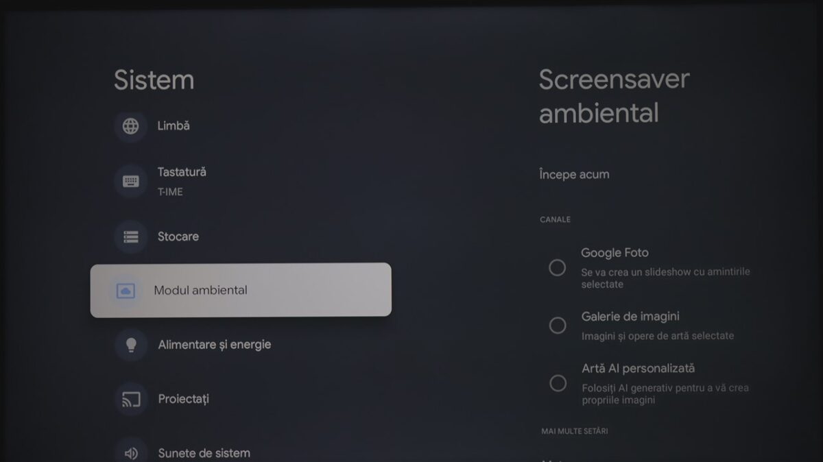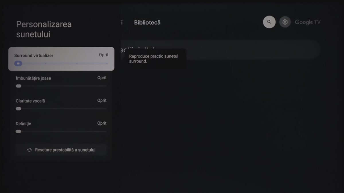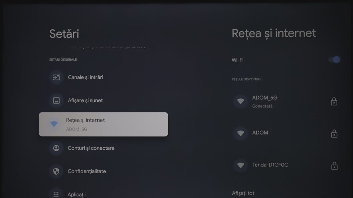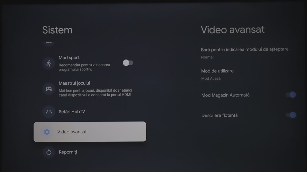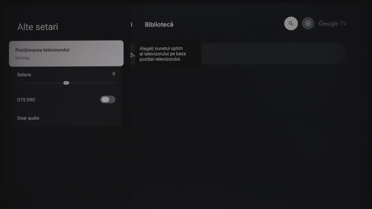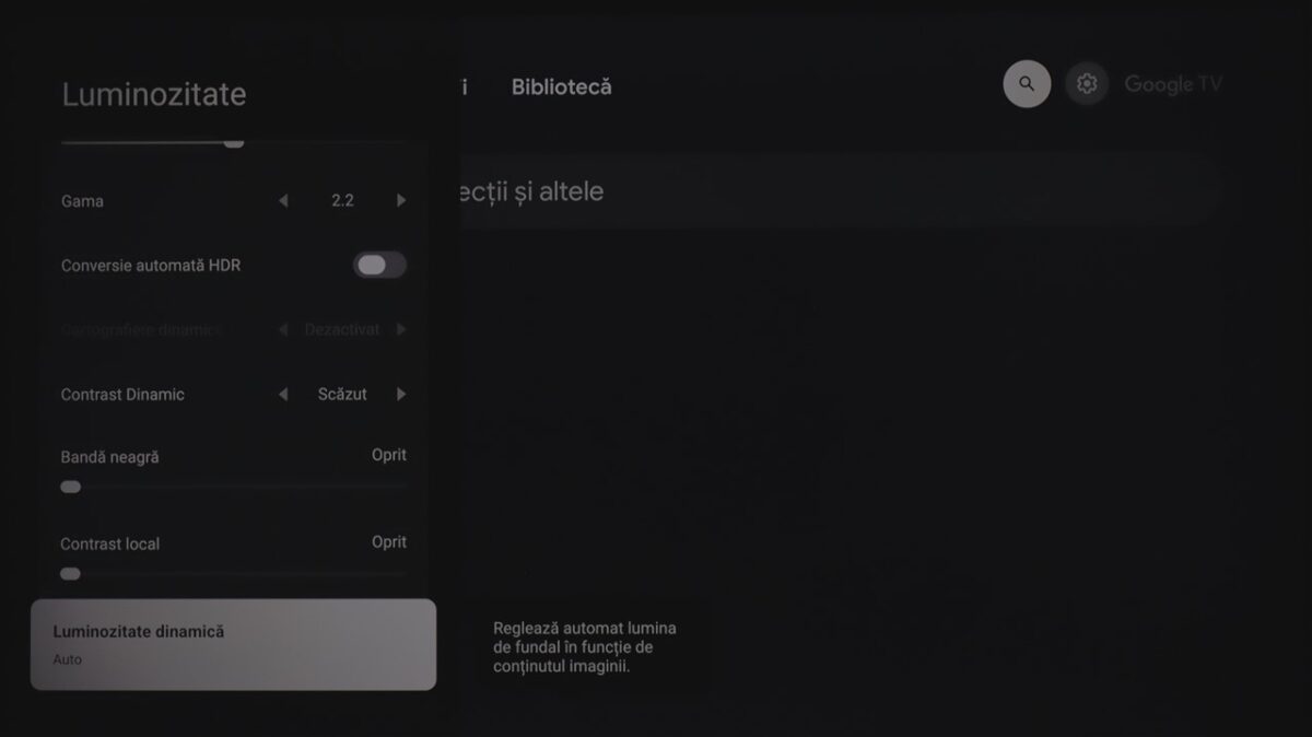 Totodată, la fel ca și la celelalte dispozitive cu Google TV pe care le-am mai testat, sistemul de operare integrează practic și zona de setări ale televizorului. Mă refer la cele de imagine, sunet, conectivitate ș.a.m.d., care sunt însă diferite de la dispozitiv la dispozitiv, meniurile și submeniurile conțin setări și reglaje diferite în funcție de ce poate oferi fiecare hardware.