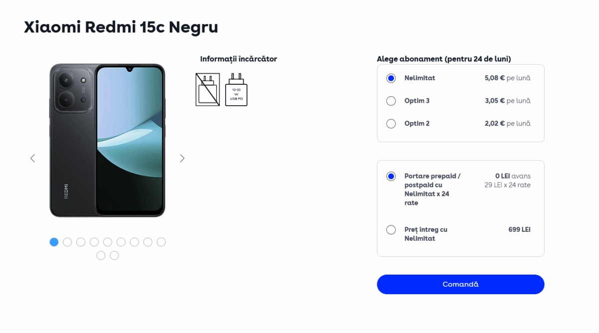 Xiaomi Redmi 15C poate fi achiziţionat cu oricare dintre cele trei abonamente disponibile: