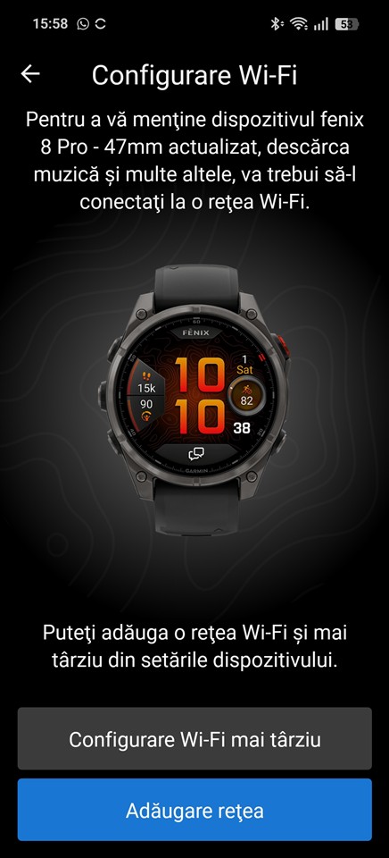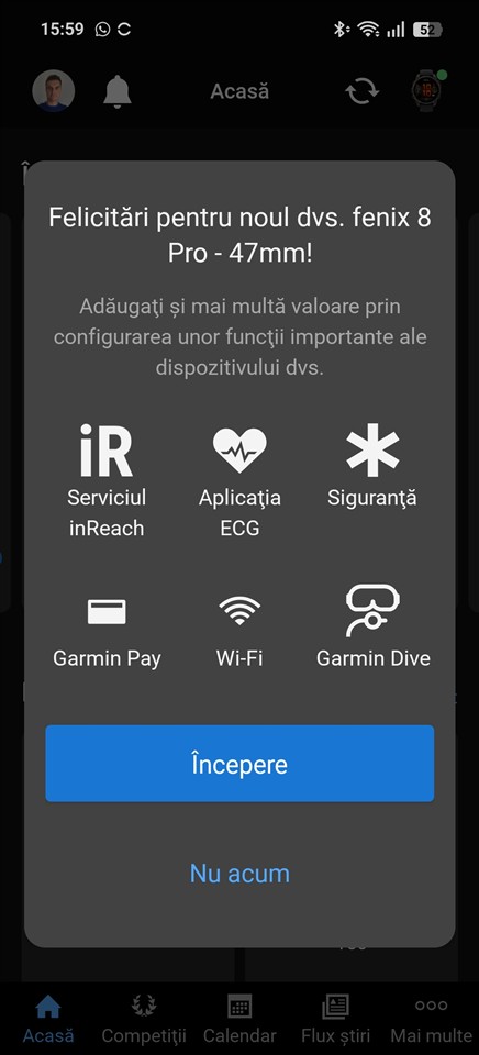 Ei bine, ca funcții, opțiuni și setări, aș putea spune că Garmin, în special printr-un model de top așa cum este fenix 8 Pro, te poate copleși prin tot ce poate. Chiar de la primii pași ai configurării ai multe de ales, de configurat, iar apoi, atât din ceas, cât și din aplicația Garmin Connect mai sunt multe de setat. Inițial poate părea prea mult, dar apoi nu ai cum să nu apreciezi posibilitățile extinse și gradul foarte înalt de personalizare a experienței de utilizare.