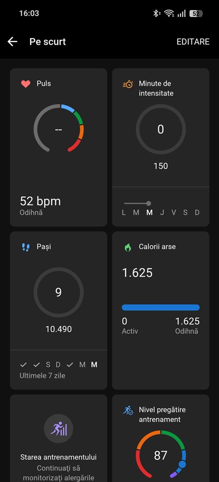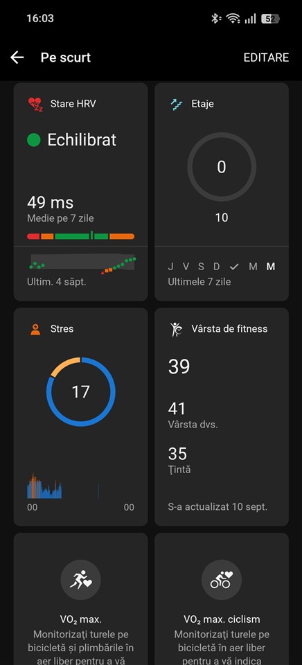 • unele dintre cele mai avansate și precise funcții de monitorizare a activităților fizice, cu rapoarte pline de detalii (Body Energy și timpul de recuperare mi se par foarte utile);